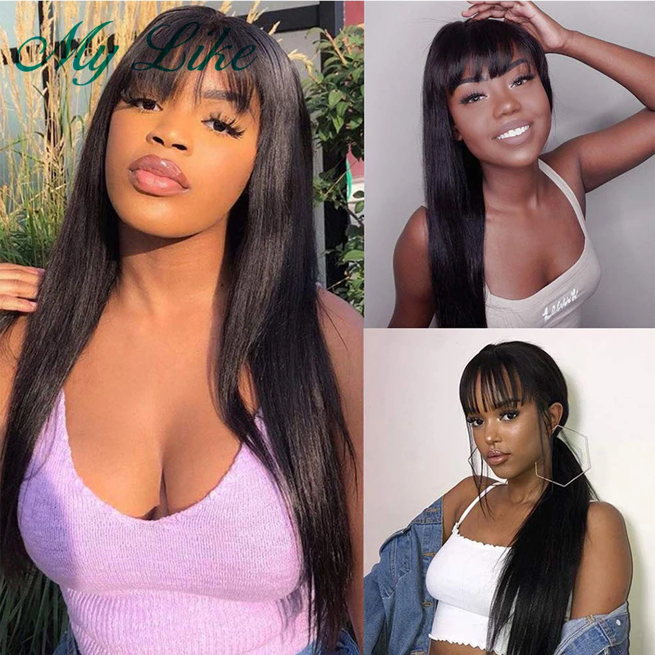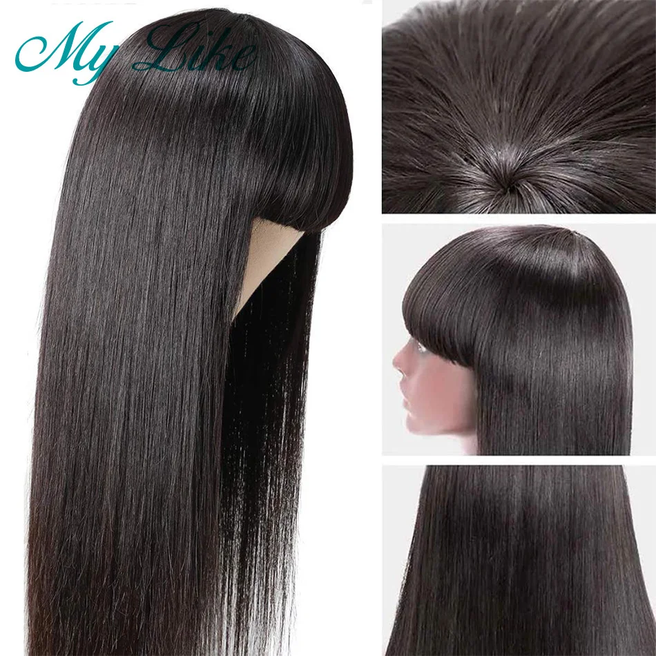 Парики с бахромой для женщин, парики из человеческих волос полностью машинной работы, парики без клея, прямые человеческие волосы, парики с челкой, бразильские волосы, гладкие