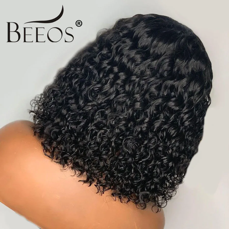 Beeos короткий кудрявый Боб 150% кружевные фронтальные человеческие волосы парики фронта шнурка al парик воды бразильский 4x4 закрытие шнурка парик глубокая волна