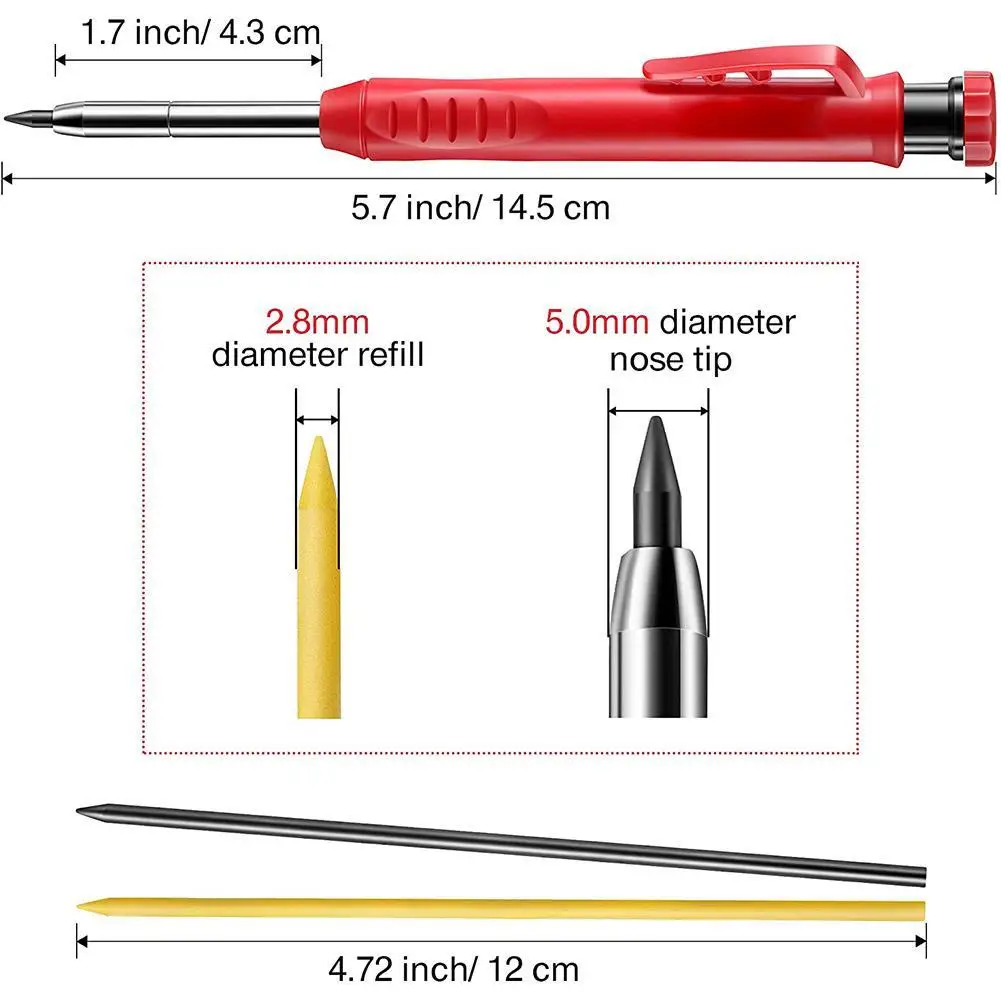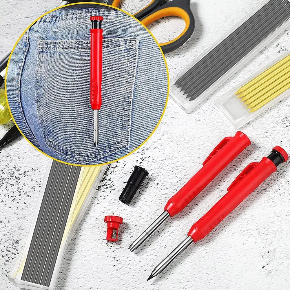 Плотничный карандаш и сменные стержни, встроенная точилка с глубоким отверстием, механический маркер, маркировочная ручка, инструмент, маркер