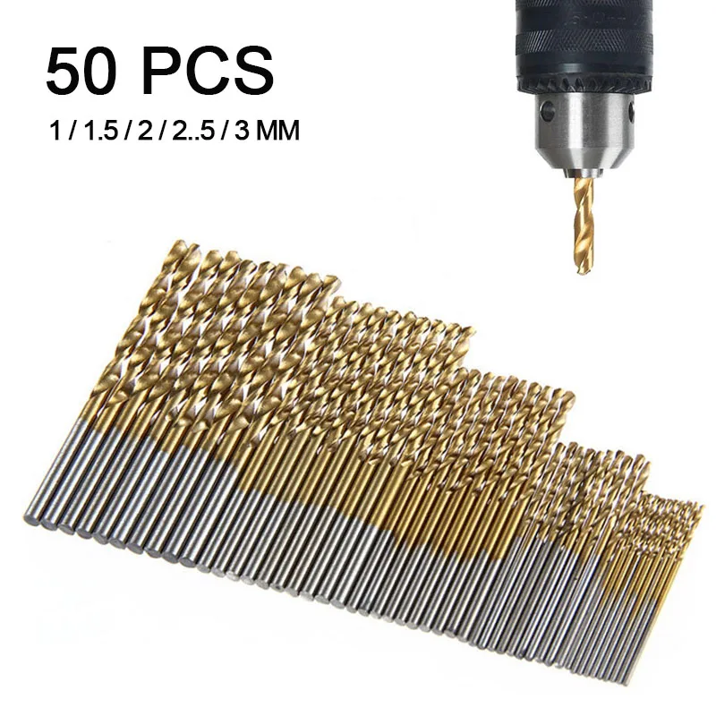 50 шт., набор сверл из быстрорежущей стали с титановым покрытием