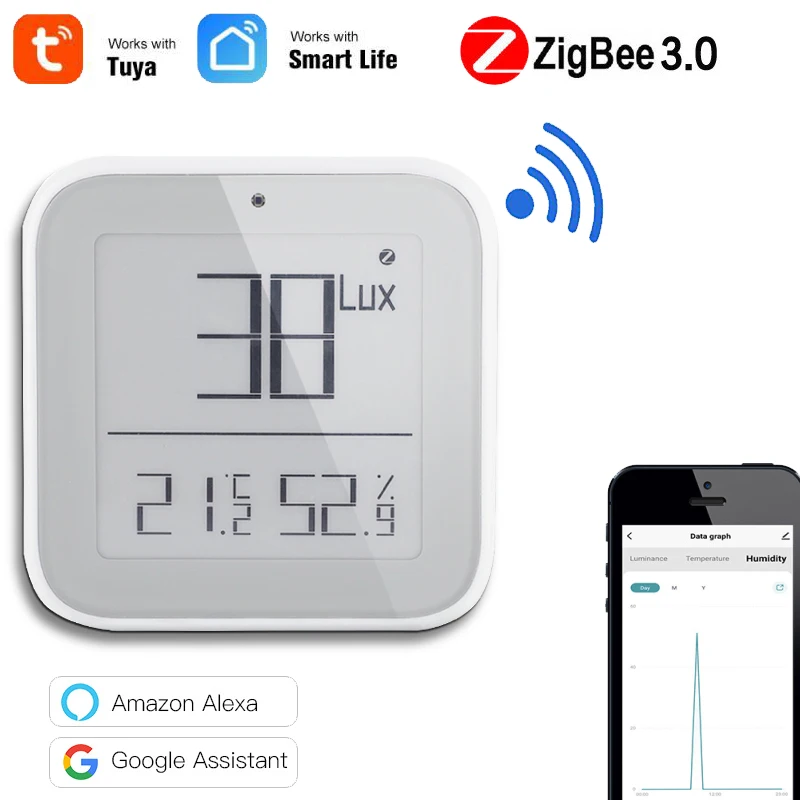 1. Умный термометр яркости определяет изменения окружающего светильник, температуры и влажности в реальном времени; Информирует пользователя об этом через приложение smart Life в качестве встроенного протокола ZigBee. Отличное дополнение для здоровья тела благодаря высокоточному детектору освещенности, температуры и влажности в доме в реальном времени.