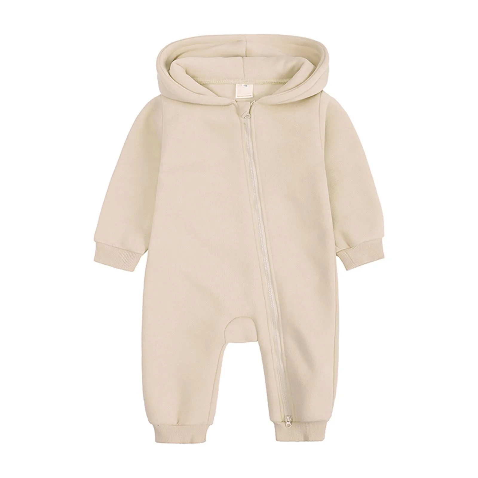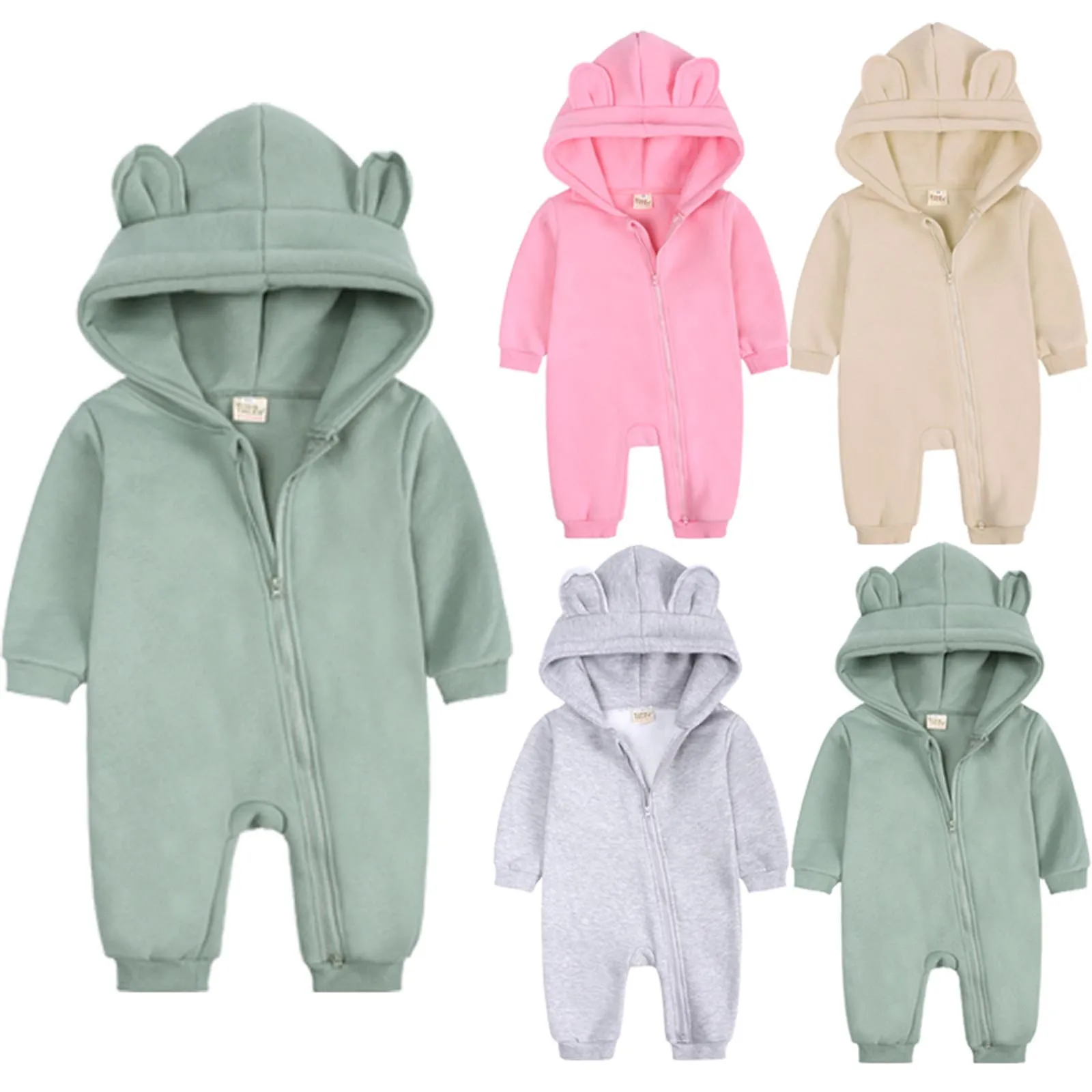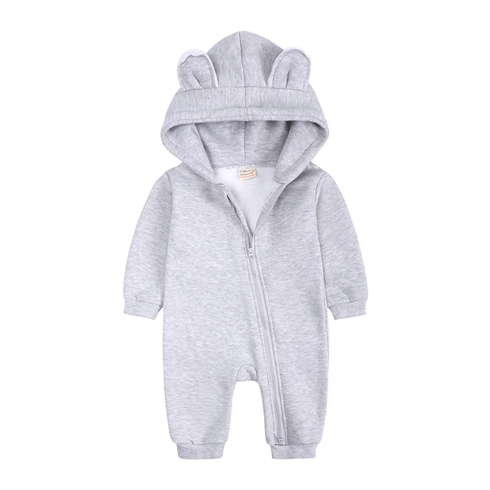 Детские зимние комбинезоны, толстый комбинезон с капюшоном для новорожденных, комбинезон на молнии для маленьких девочек и мальчиков, осенняя большая шапка для младенцев, одежда для восхождения