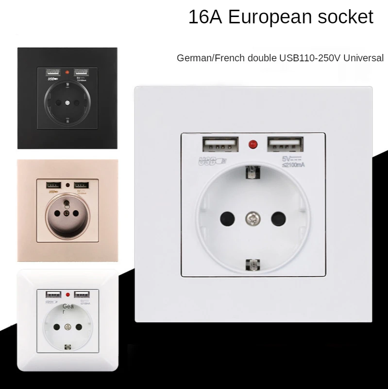 Европейская розетка с двойной панелью USB французская немецкая Евро...