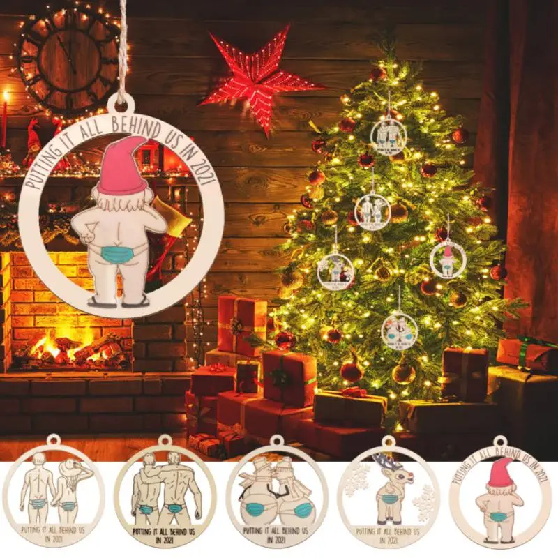 Забавная деревянная подвеска, размещающая все позади нас в 2021 году, креативная вырезная резьба, подвесное украшение на Рождество, новогоднее Автомобильное зеркало заднего вида