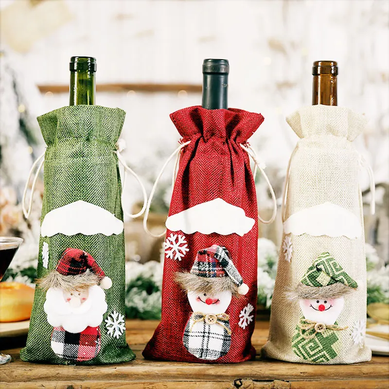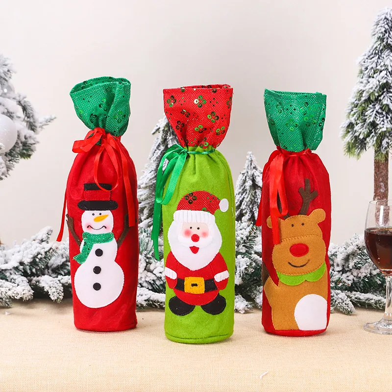 Рождественские подарочные пакеты, держатель для бутылки вина, пылез...