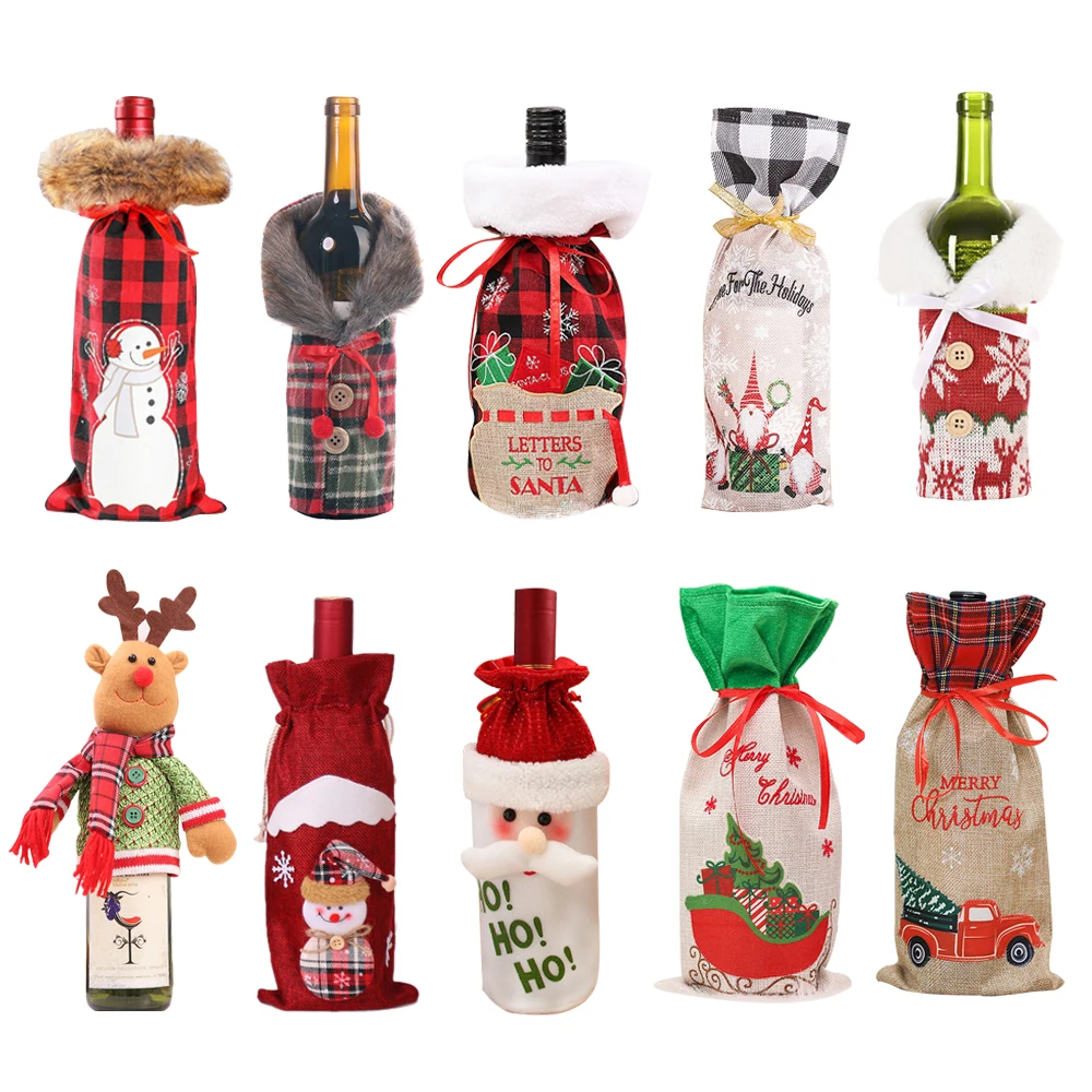 Рождественские подарочные пакеты, держатель, крышка для винной буты...