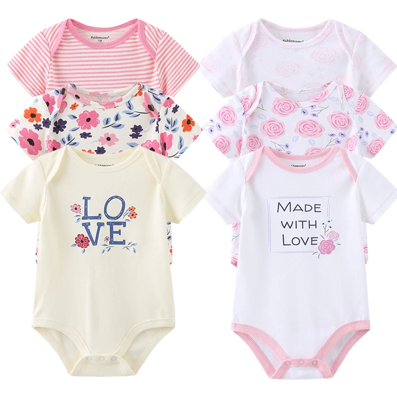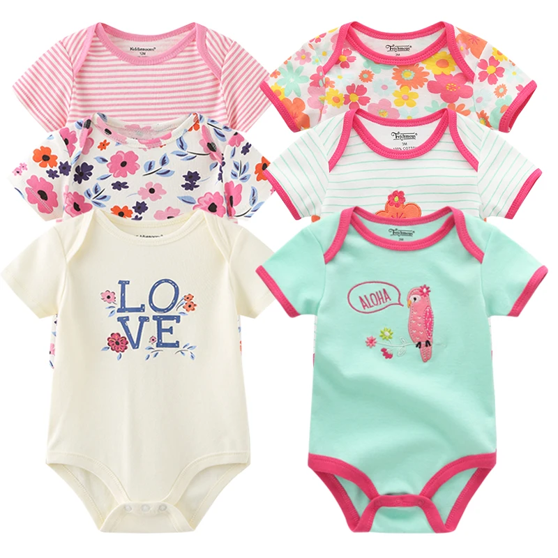 Боди для маленьких девочек, модные боди, 6 шт.Лот, с коротким рукавом, с принтом, детская одежда для маленьких девочек