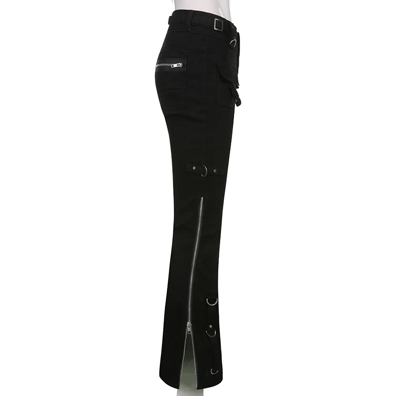 Джинсы-клеш Rapcopter женские с металлической молнией, готические ч...