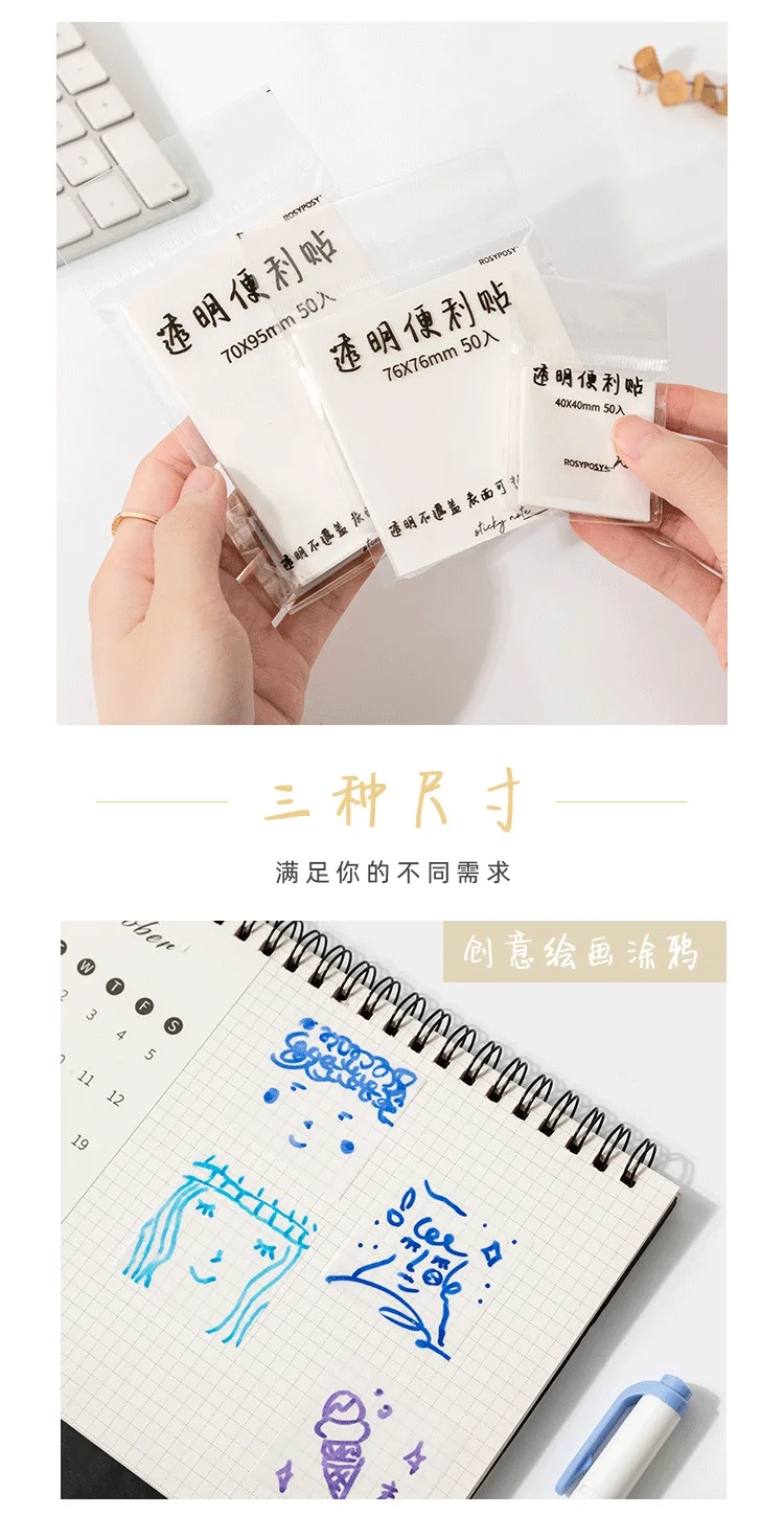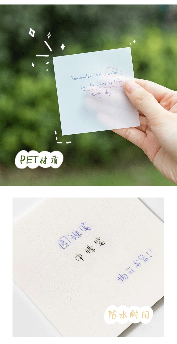 Набор прозрачных клейких блокнотов Kawaii, 50 листов, водонепроница...