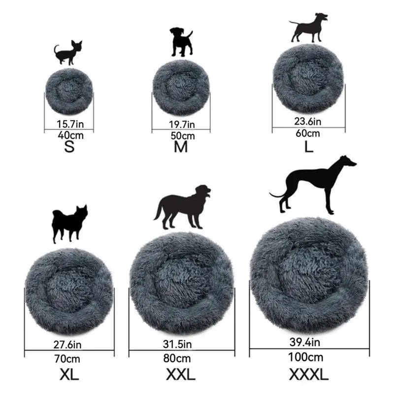 6. Пожалуйста, учитывайте погрешность в 3-5 см из-за ручного измерения, размер соответствует внешнему диаметру кровати для домашних животных, включая длинный плюш.
