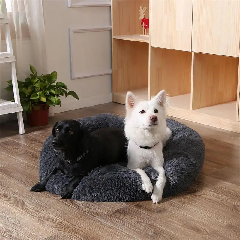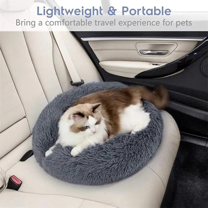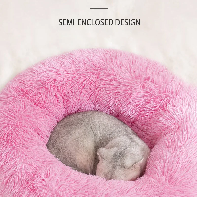Съемная круглая Лежанка для кошек, плюшевая Лежанка для домашних питомцев, кровать для собаки в виде пончика, зимние теплые спальные лежаки, домик для средних и больших собак, моющийся