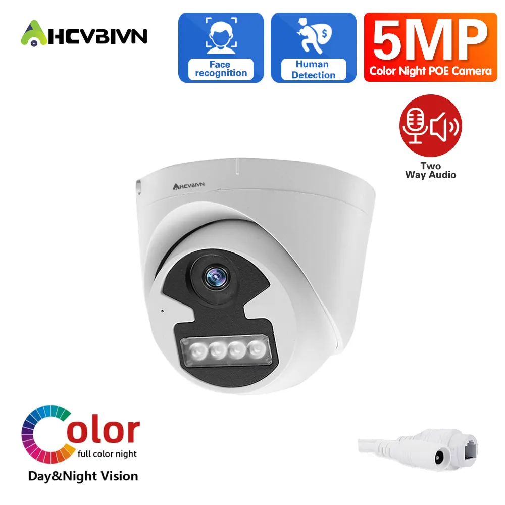 5-мегапиксельная IP-камера, полноцветная камера POE, купольная камера с обнаружением лица для помещений, двусторонняя аудиосвязь, P2P, удаленный просмотр, система видеонаблюдения CCTV