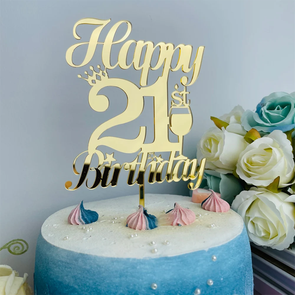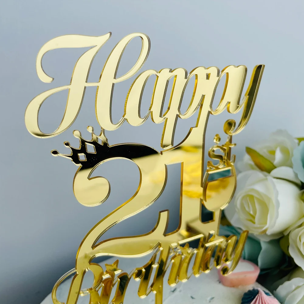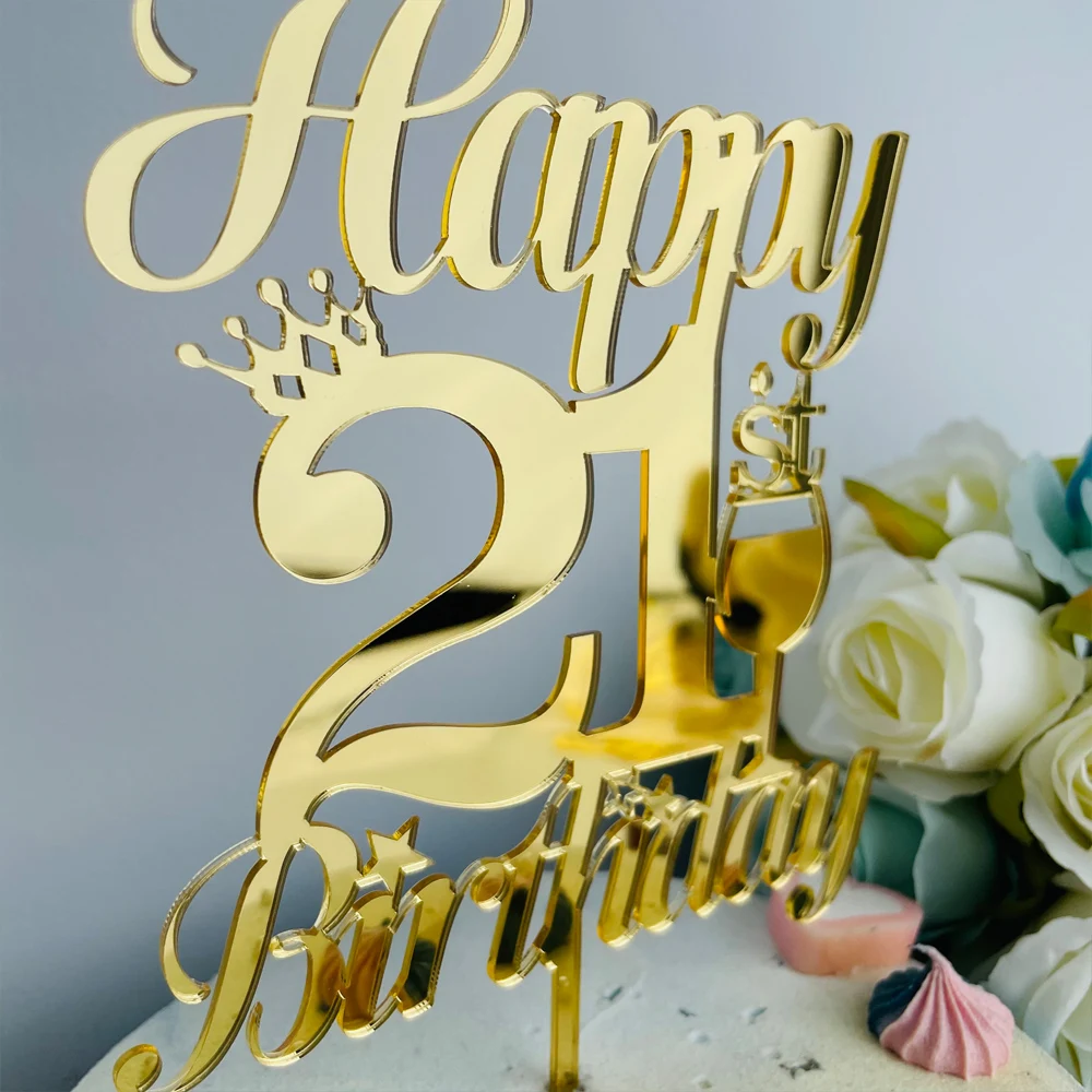 Персонализированный Топпер для торта на день рождения 21, 30, 40, 50, золотой акриловый зеркальный декор для торта на день рождения