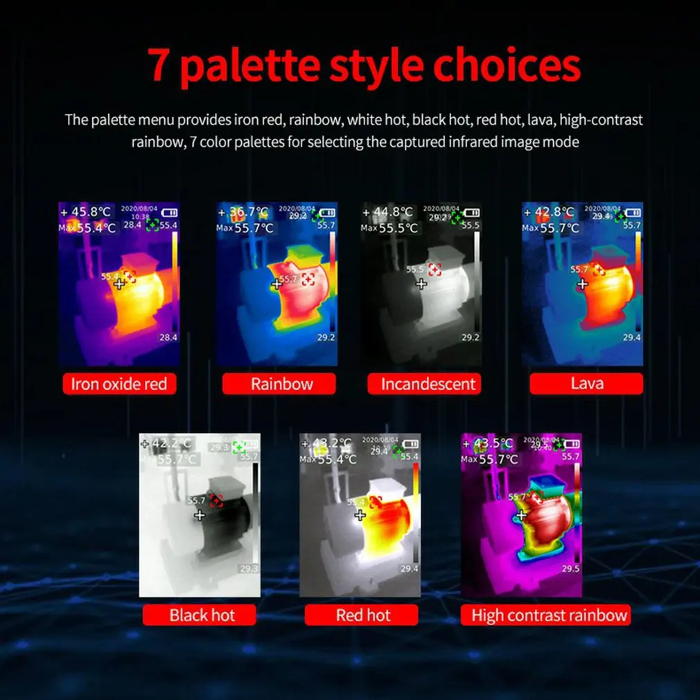 Образцы: белый горячий, черный горячий, железный красный, lava, Радуга, высокая контрастность Радуга, Красный Горячий