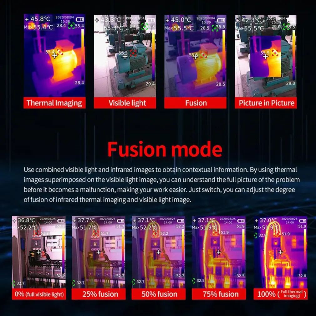 Смешанные настройки: 0% (полностью Видимый светильник), 25%, 50%, 75%, 100% (полное тепловое изображение)