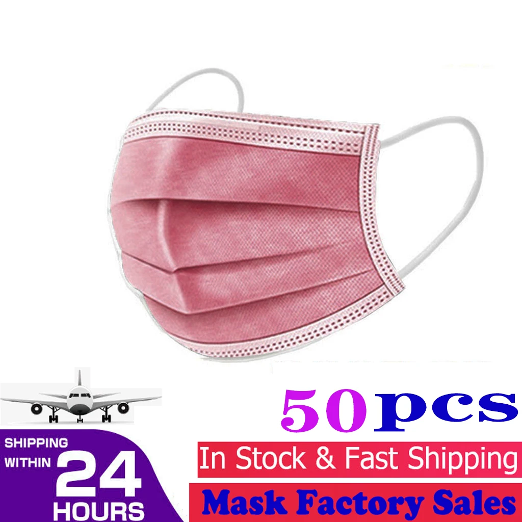 Одноразовые маски для лица, 50 шт., розовые пылезащитные колпачки д...