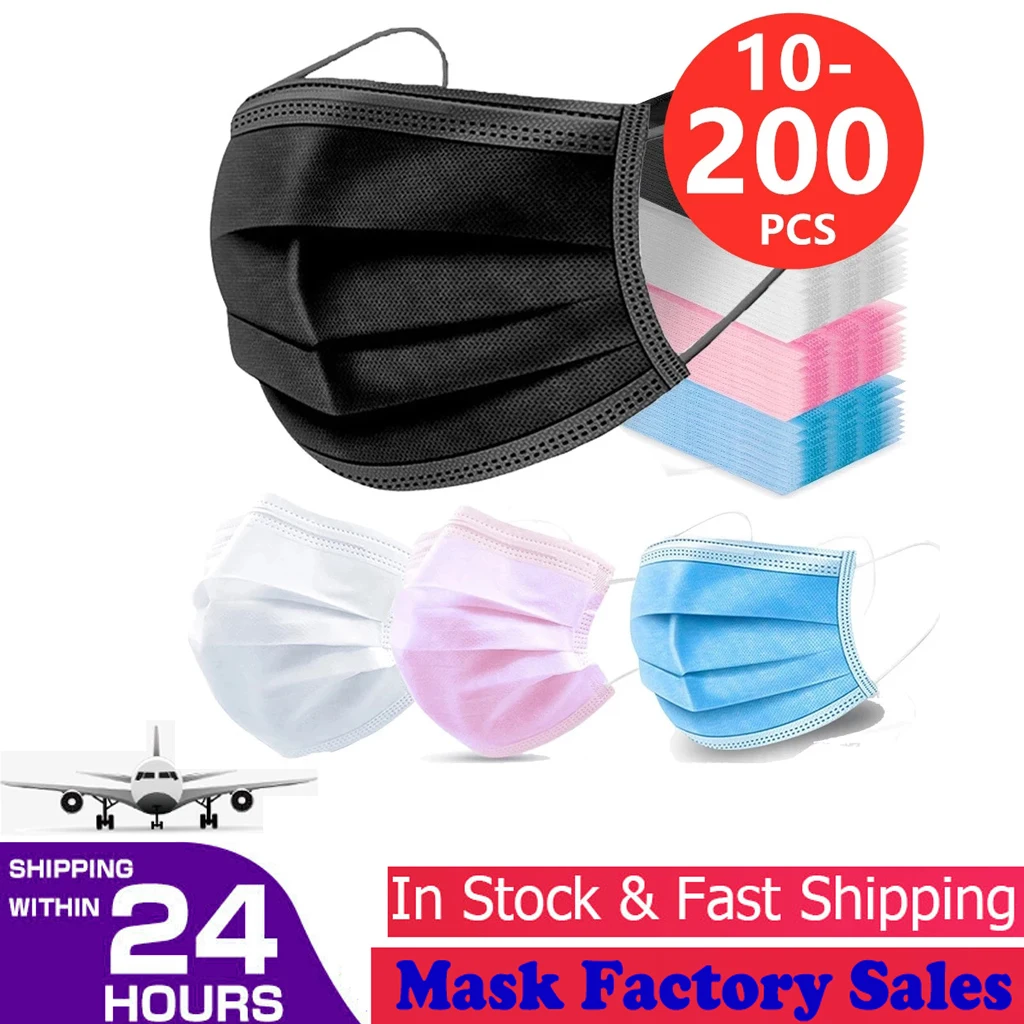10-200 шт. маска одноразовая маска для лица Черный Nonwove 3 Слои м...