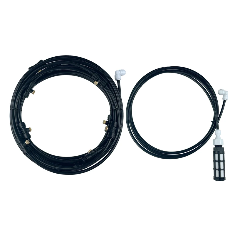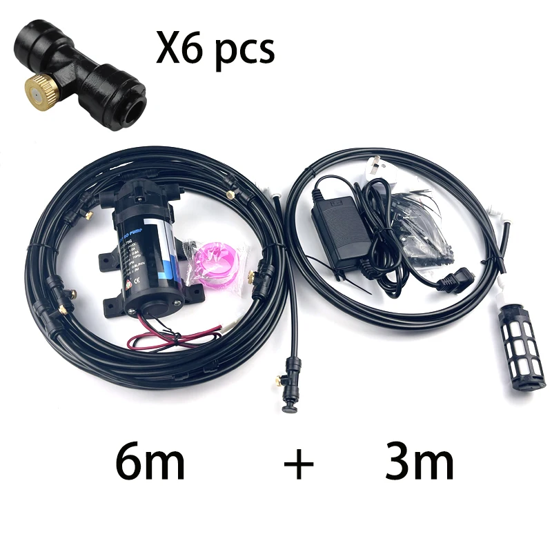 Спецификация системы запотевания:Цвет: белый; Черный; Бежевый; Серый; Черный и синийРазмер: 6 м/9 м/12 м/15 мТрубка: 1/4 дюйма (6,35 мм) PE водопроводная трубкаНасадка: 0,4 мм отверстие латунь наконечник для распыленияНасадка: размер резьбы UNC10-24Спецификация насоса:Напряжение: 24 В постоянного токаРабочее давление 70 PSIРасход: ≥ 0,8Л/минДиаметр трубы: 1/4''Спецификация адаптера питанияВход: 200-240 В переменного тока 50 Гц 1.5AВыход: 24V/1.6AПодключение: Подключите