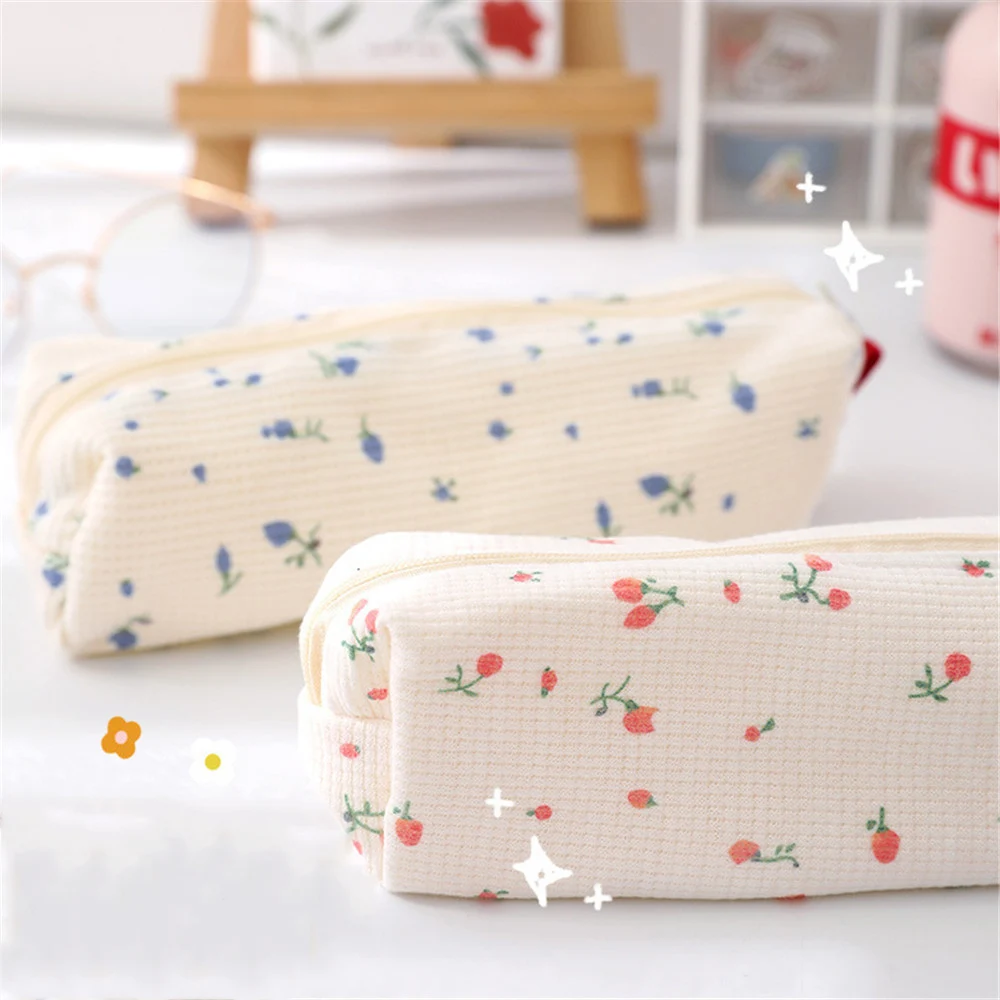 Симпатичная синяя розовая Цветочная сумка для карандашей из хлопка, Женская милая сумка для хранения канцелярских принадлежностей, школьные и офисные принадлежности, детские подарки
