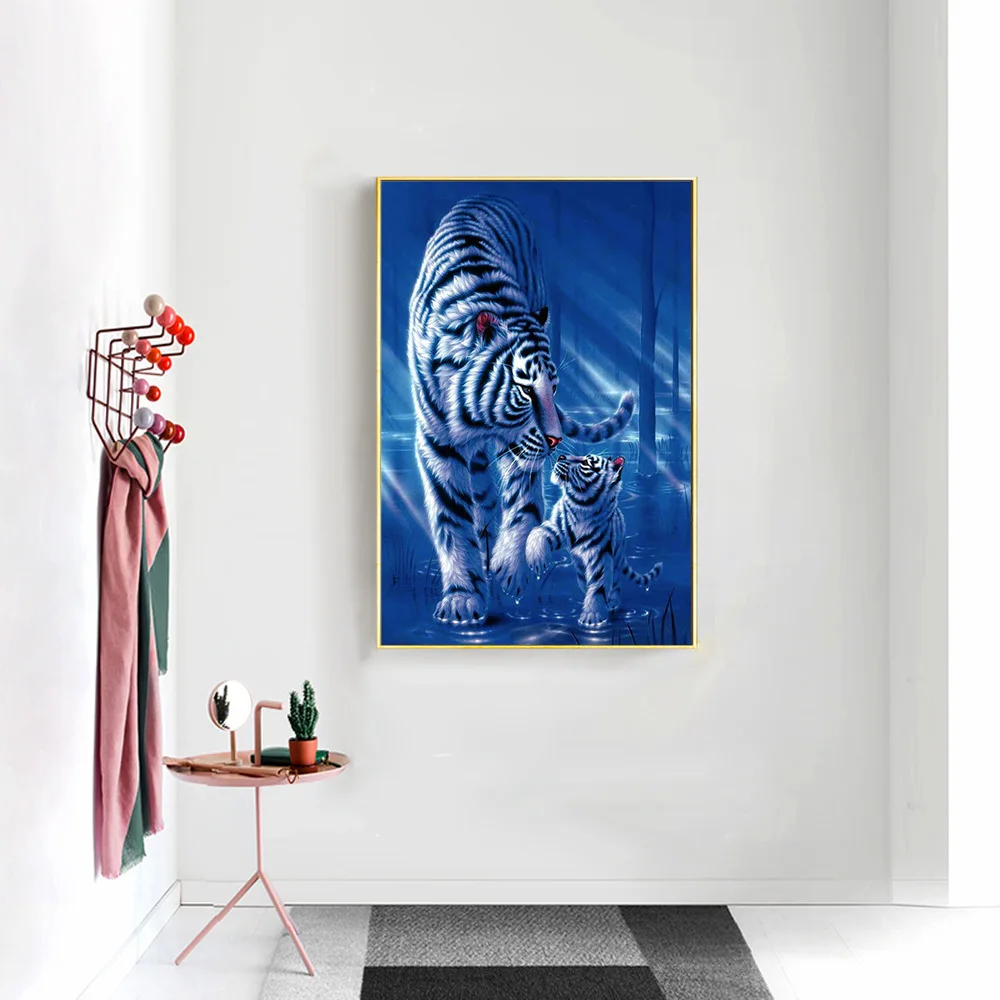 Алмазная 5d Вышивка HUACAN, мозаика с тигром в стиле Фэнтези, полноразмернаякруглая картина с животными, домашний декор
