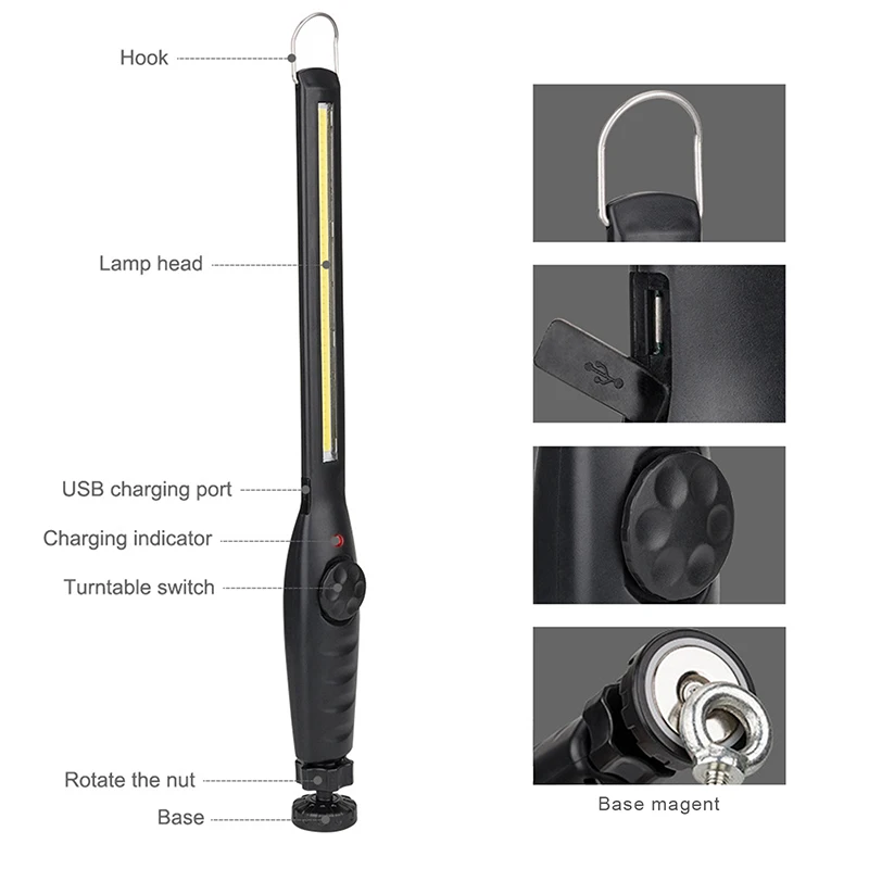 COB светодиодный рабочий свет фонафонарь с USB-подзарядкой, Светоди...