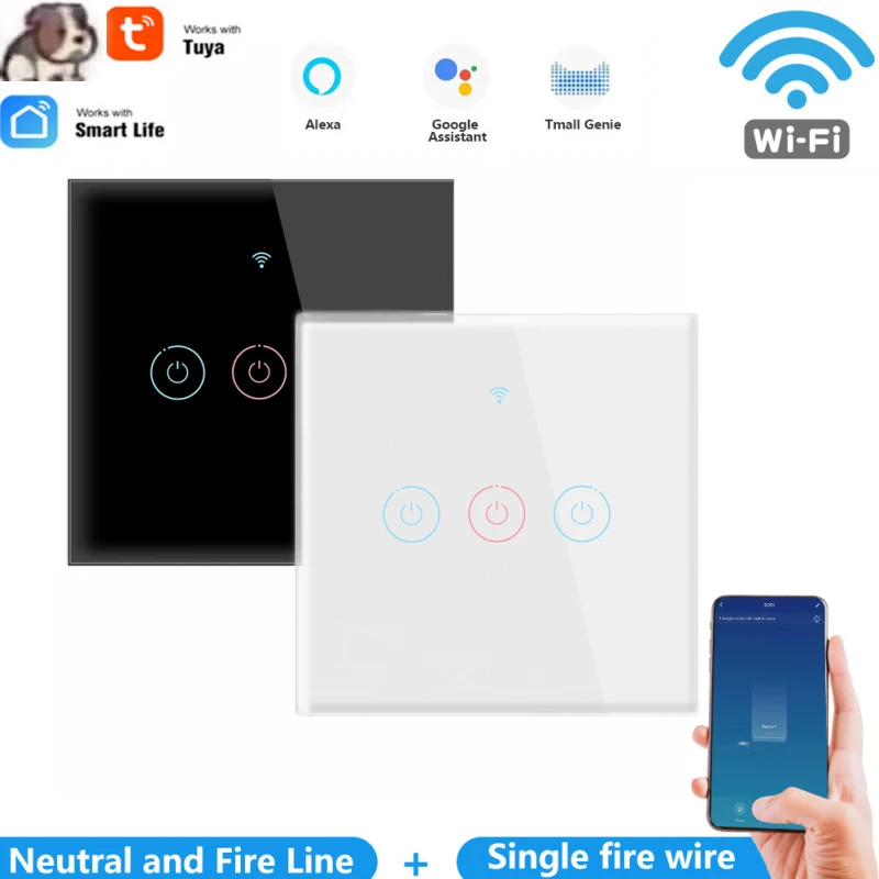 Умный светильник ель света Tuya Wi-Fi со стеклянной панелью и сенсорным датчиком, настенный выключатель для умного дома, без нейтральной системы, работает с Alexa,Google Alice