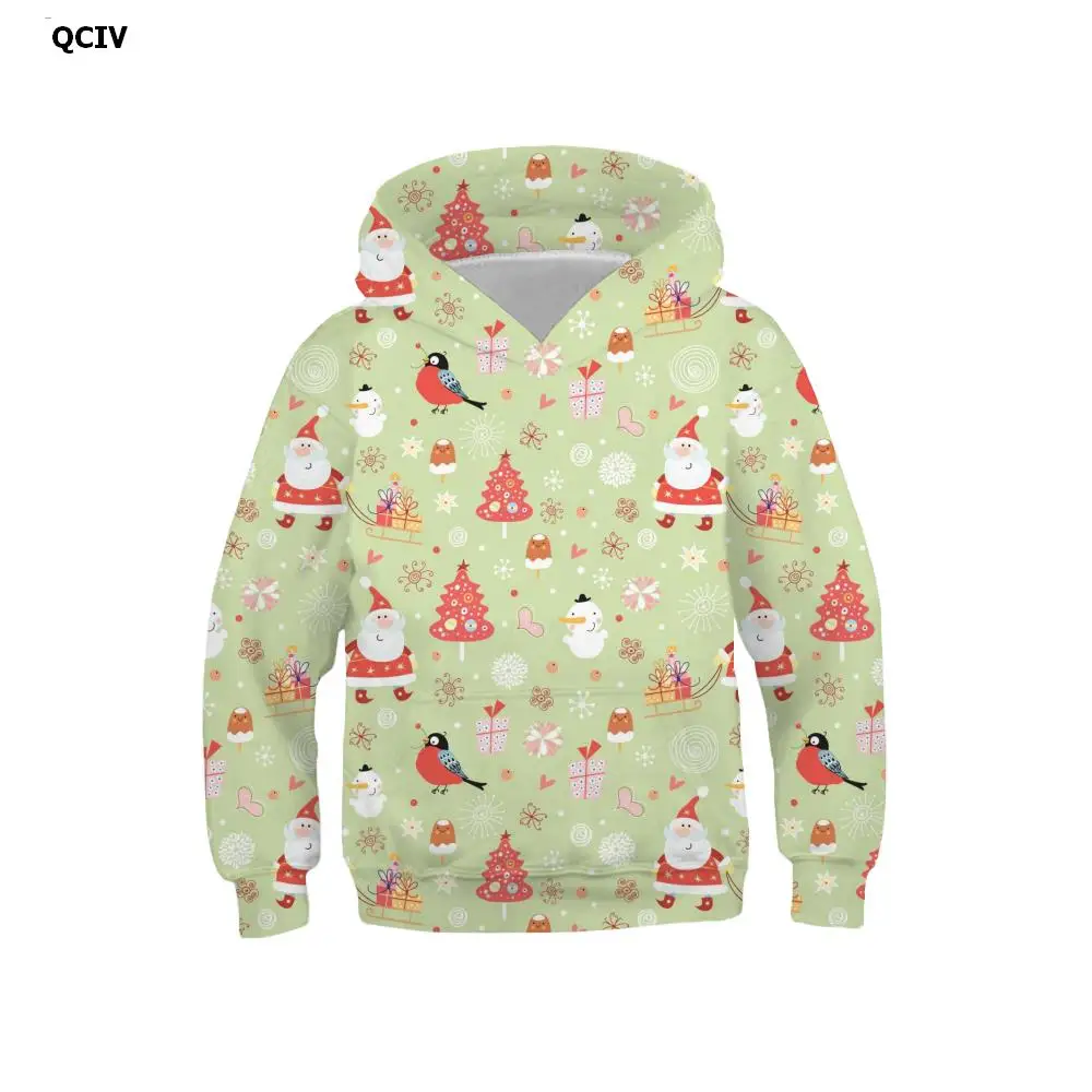 Брендовые рождественские свитшоты QCIV с капюшоном в виде рождественской елки для мальчиков, повседневный свитшот с 3D-принтом, Забавный принт с длинным рукавом