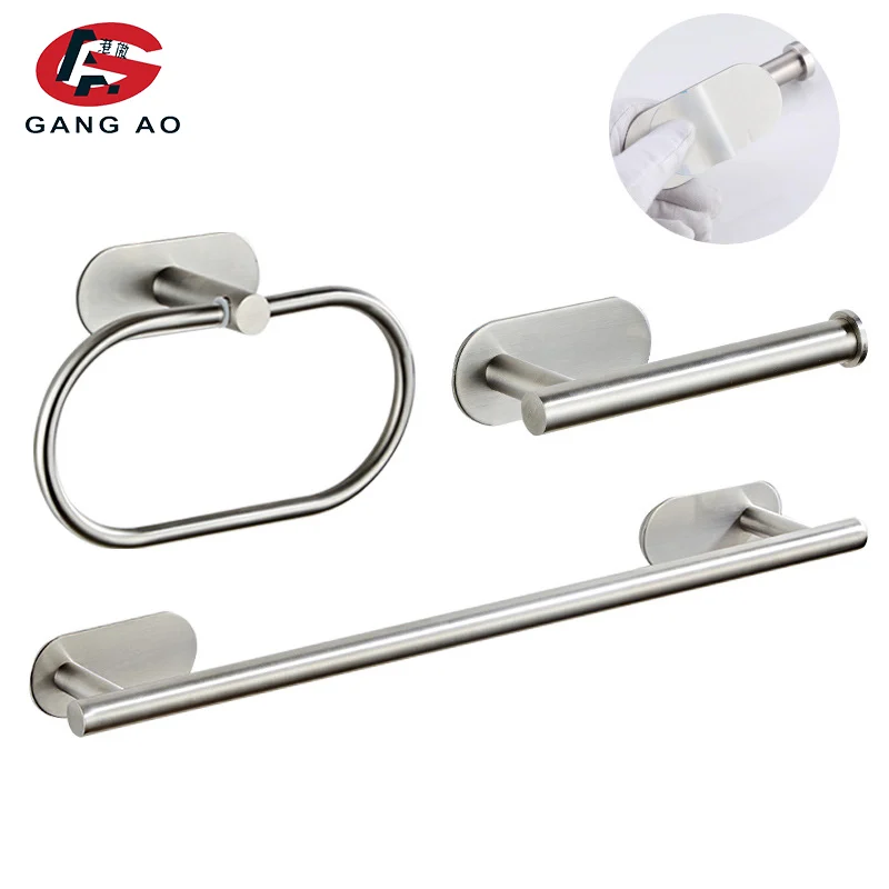 Серебристый набор аксессуаров для ванной комнаты из нержавеющей стали, вешалка для полотенец, держатель для туалетной бумаги, крючок для полотенец, аксессуары для ванной комнаты без гвоздей