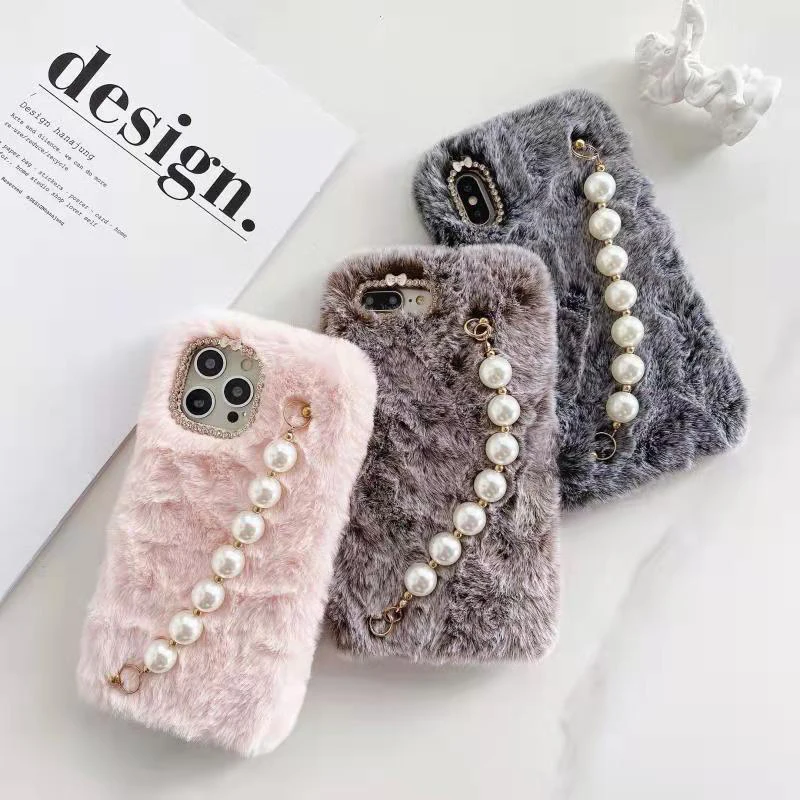 Чехол с жемчужным браслетом для Sony Xperia 1 5 iii 8 10 ii Plus, пушистый меховой чехол