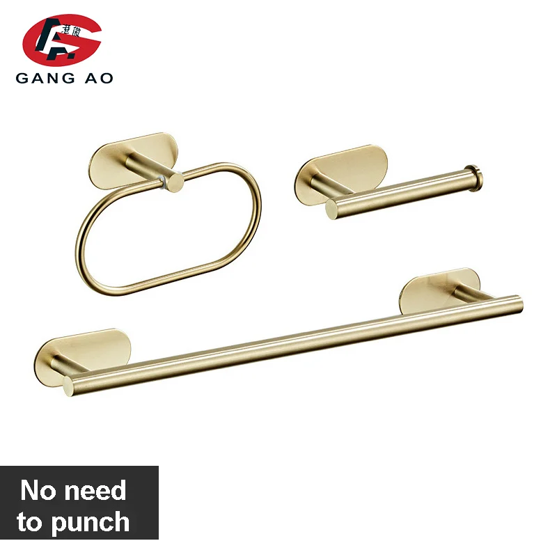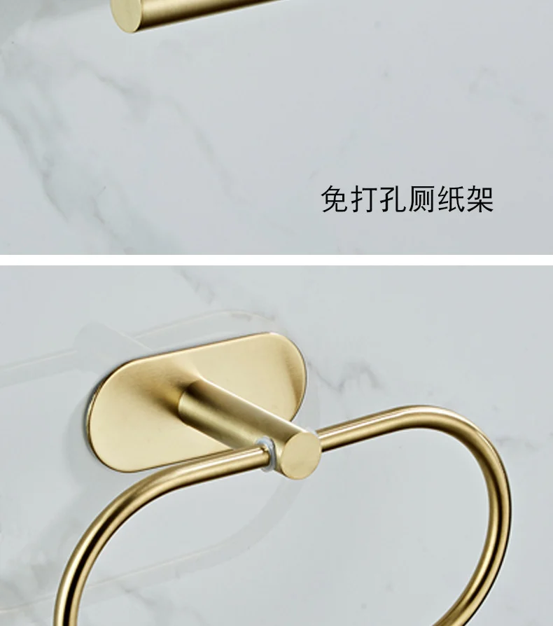 Золотистый набор аксессуаров для ванной комнаты, держатель для бумаги, вешалка для полотенец, крючок для халата, вешалка для полотенец, аксессуары для ванной комнаты из нержавеющей стали без гвоздей