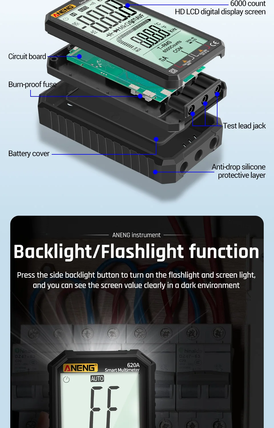 Цифровой умный мультиметр ANENG 620A, 4,7 дюйма, 6000 отсчетов, ист...