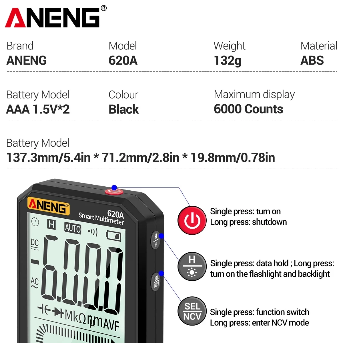 ANENG 620A мультиметр профисионал цифровой Смарт тестер 6000 отсчет...