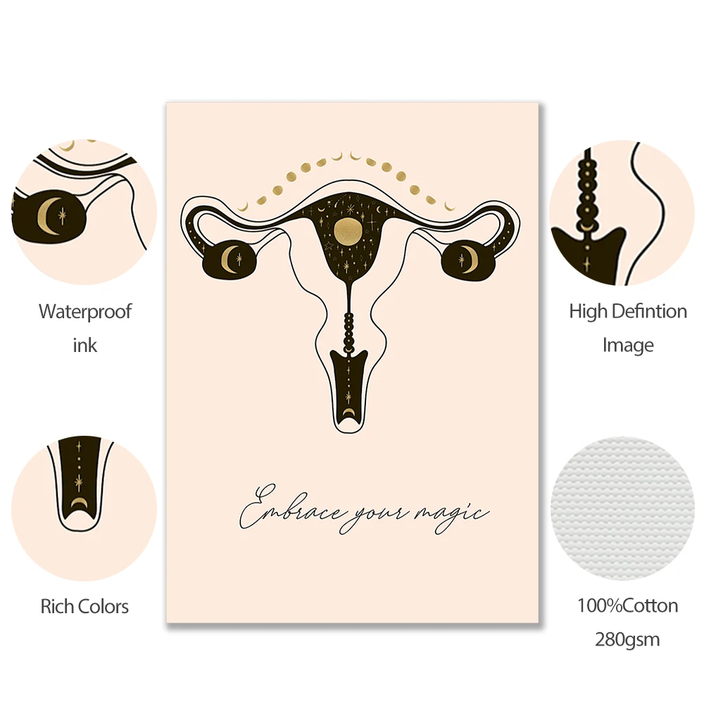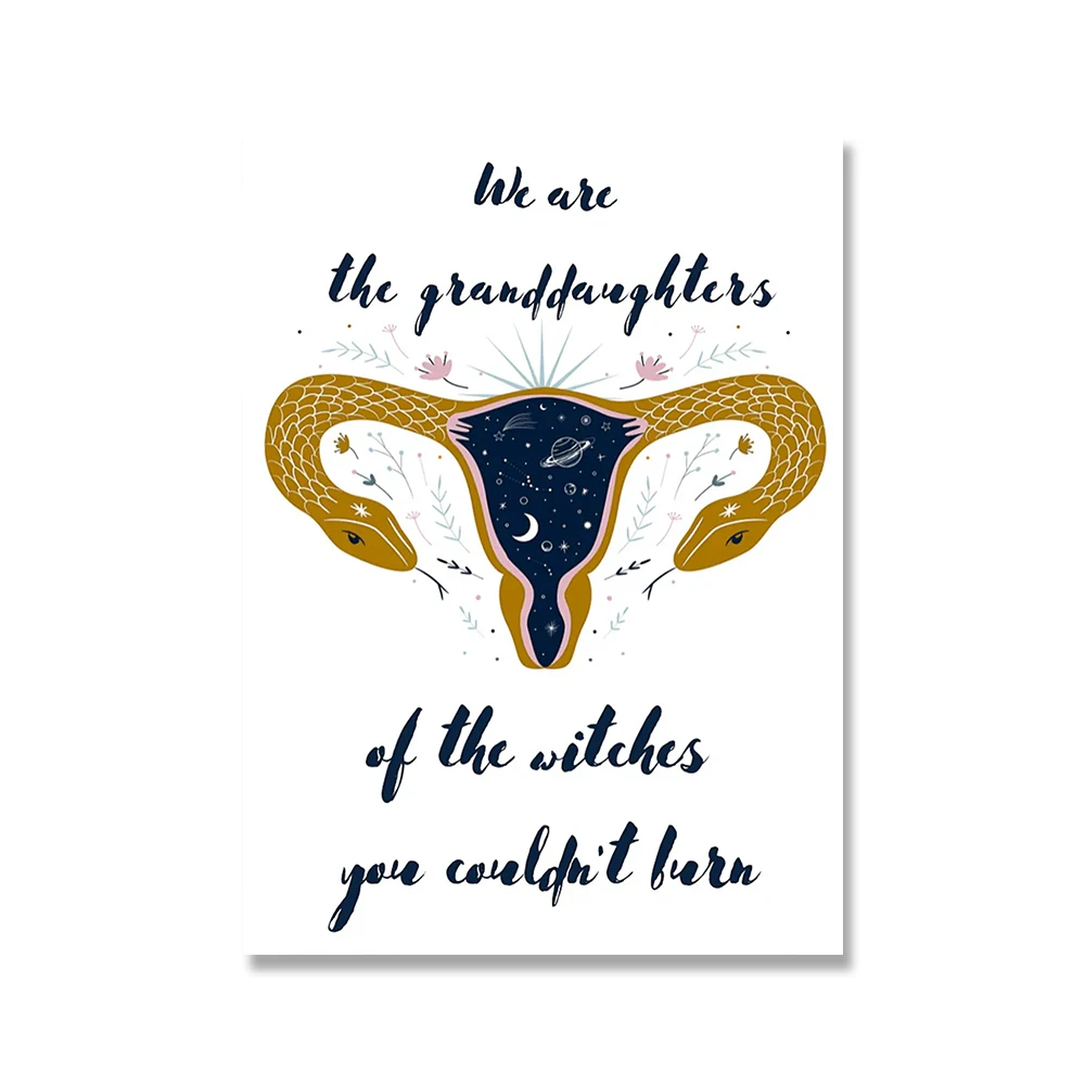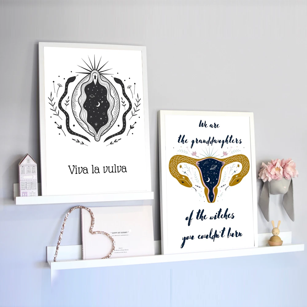 Бохо Феминистская языческая мантра виккан настенное искусство постер, абстрактный Рисунок змея девушка тело орган холст живопись гостиная домашний декор
