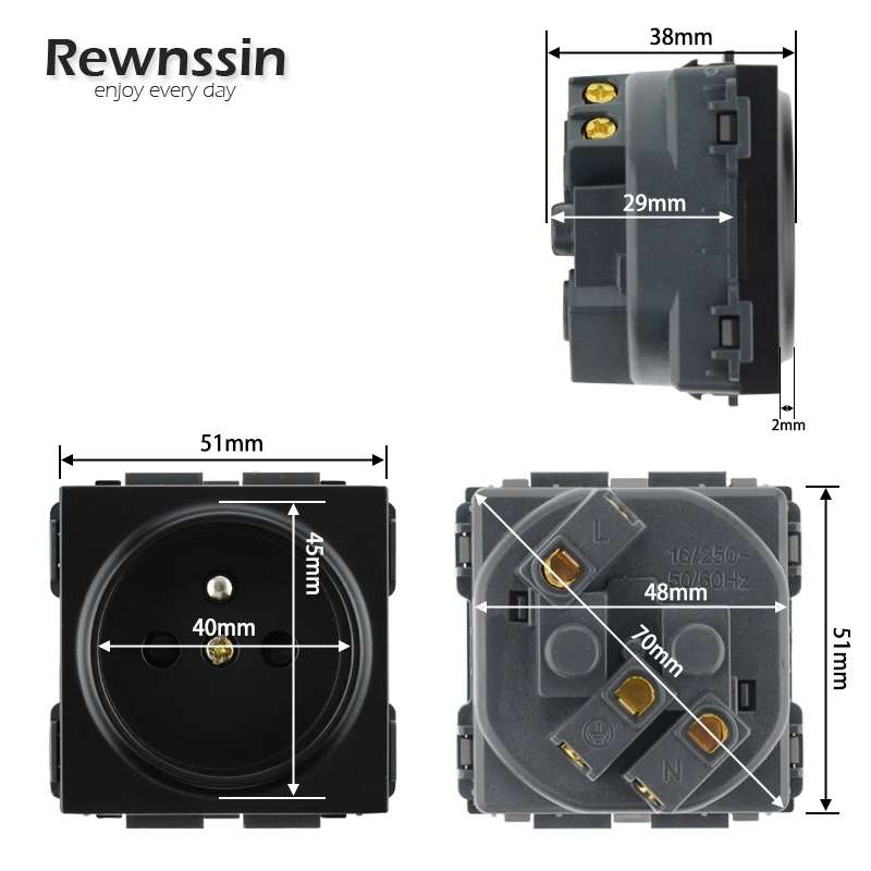 Тип изделия: модуль розеткиЦвет: белый/черный/серебристый/золотистыйМатериал панели: пластикНоминальное напряжение: 110-250 ВНоминальный ток: 16A 50/60HzСтандарт: 52 мм * 52 ммВключая:Только один модуль