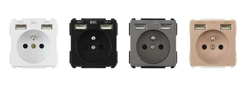 DIY Бесплатная комбинация, модуль розетки для Франции, белый черный серебристый золотой стены, двойные USB-порты для зарядки, розетка 110-250 В