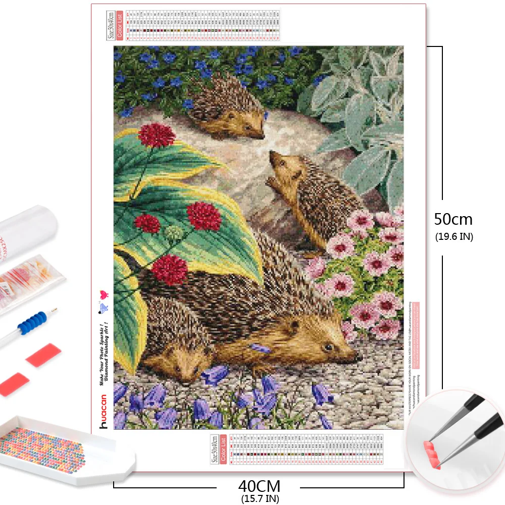 Алмазная живопись HUACAN 5D сделай сам, ежик, искусственная квадратнаякруглая вышивка, творческие хобби