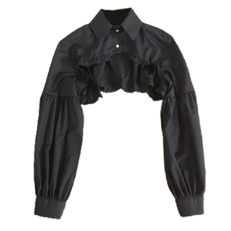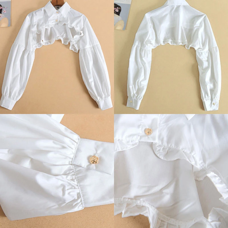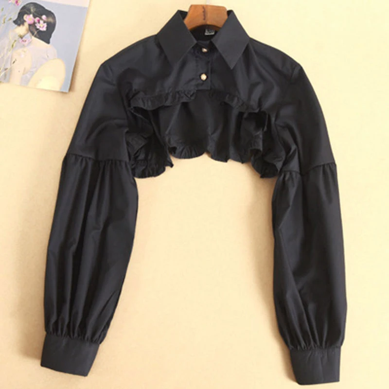 Женская короткая накидка с длинным рукавом, оборками и ложным воротником