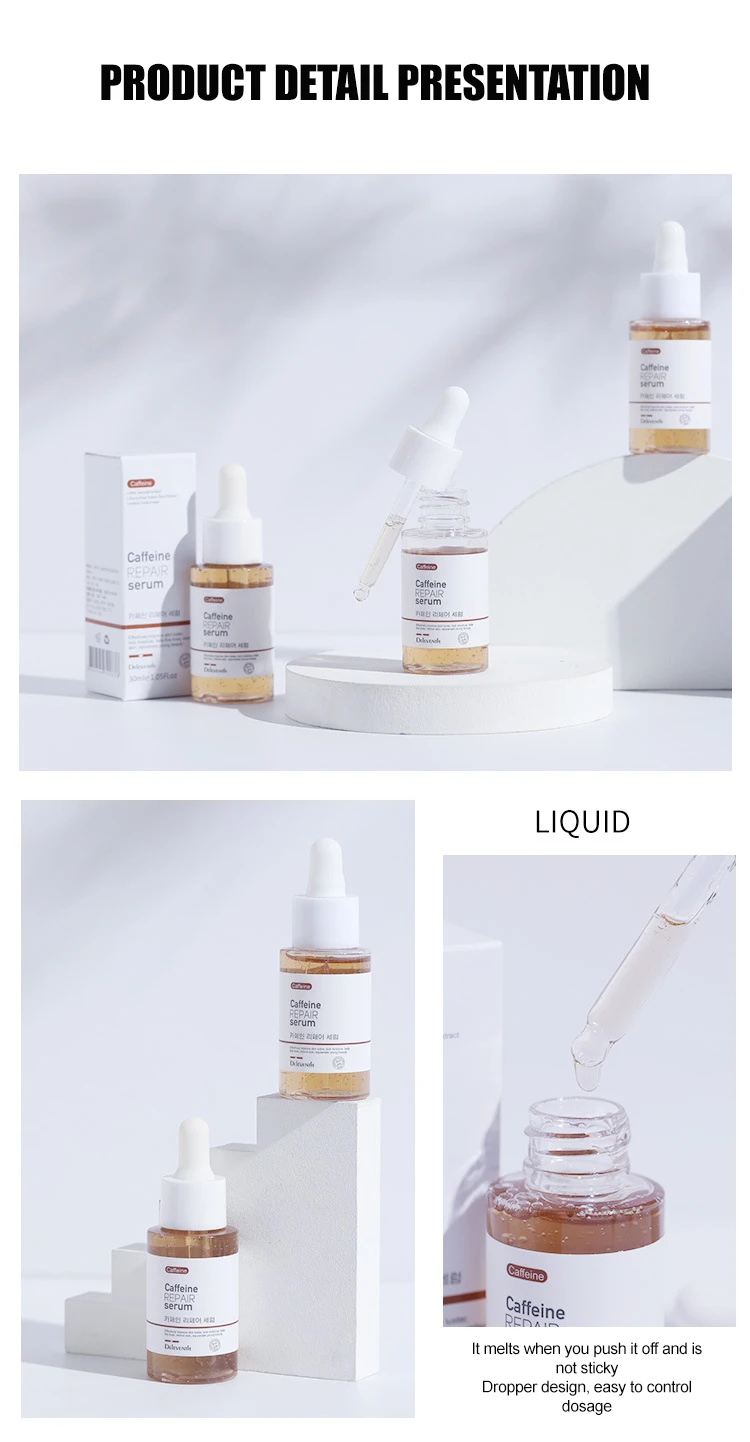 Сыворотка для восстановления кофеина с защитой от окисления, пятна, тонкие линии, тусклый желтоватый глубокий питательный увлажняющий блеск, твердый уход за кожей