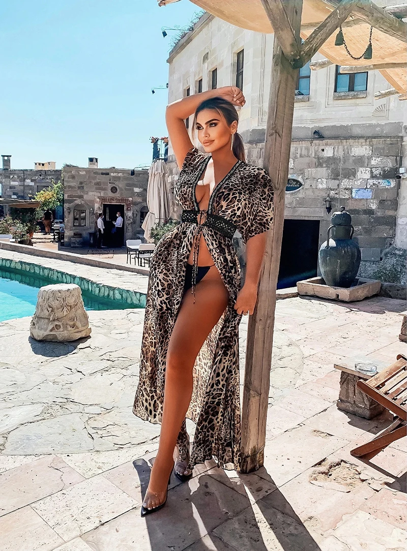 Кружевное пляжное платье-бикини, с глубоким V-образным вырезом и дл...