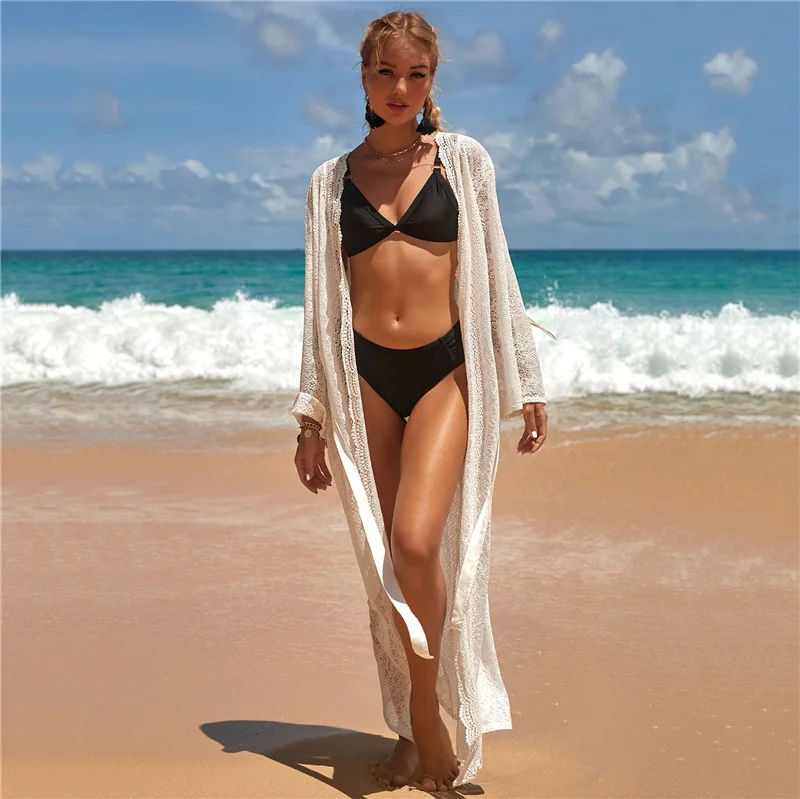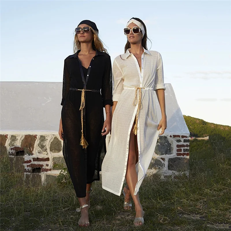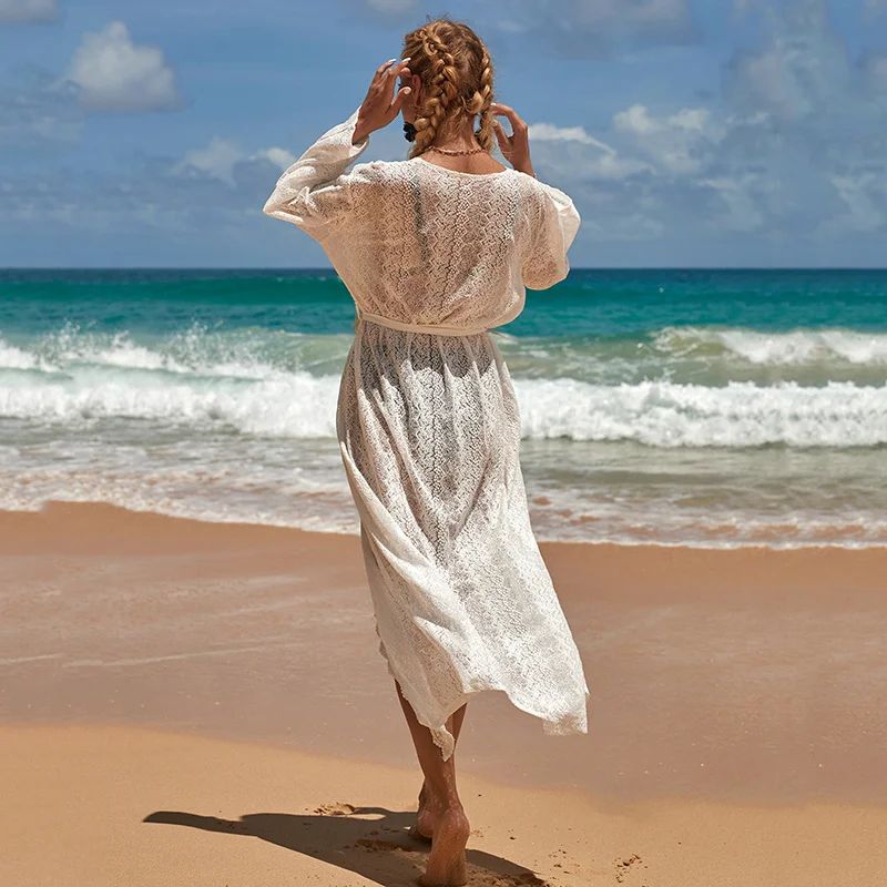 2021 вязаная крючком белая пляжная блузка талия длинная шаль для бикини купальная блузка халат пляжная одежда