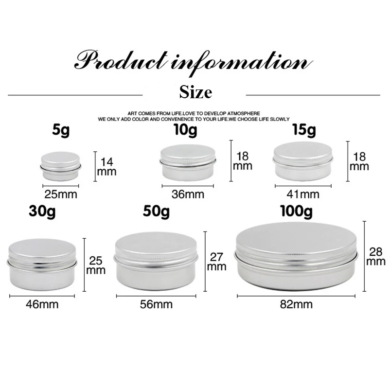 1-5 шт., косметическая коробка для ногтей, косметическая бусина для хранения, косметический крем, алюминиевая коробка, контейнер, круглые многоразовые бутылки, 5g, 100 г, 30 г, 50 г