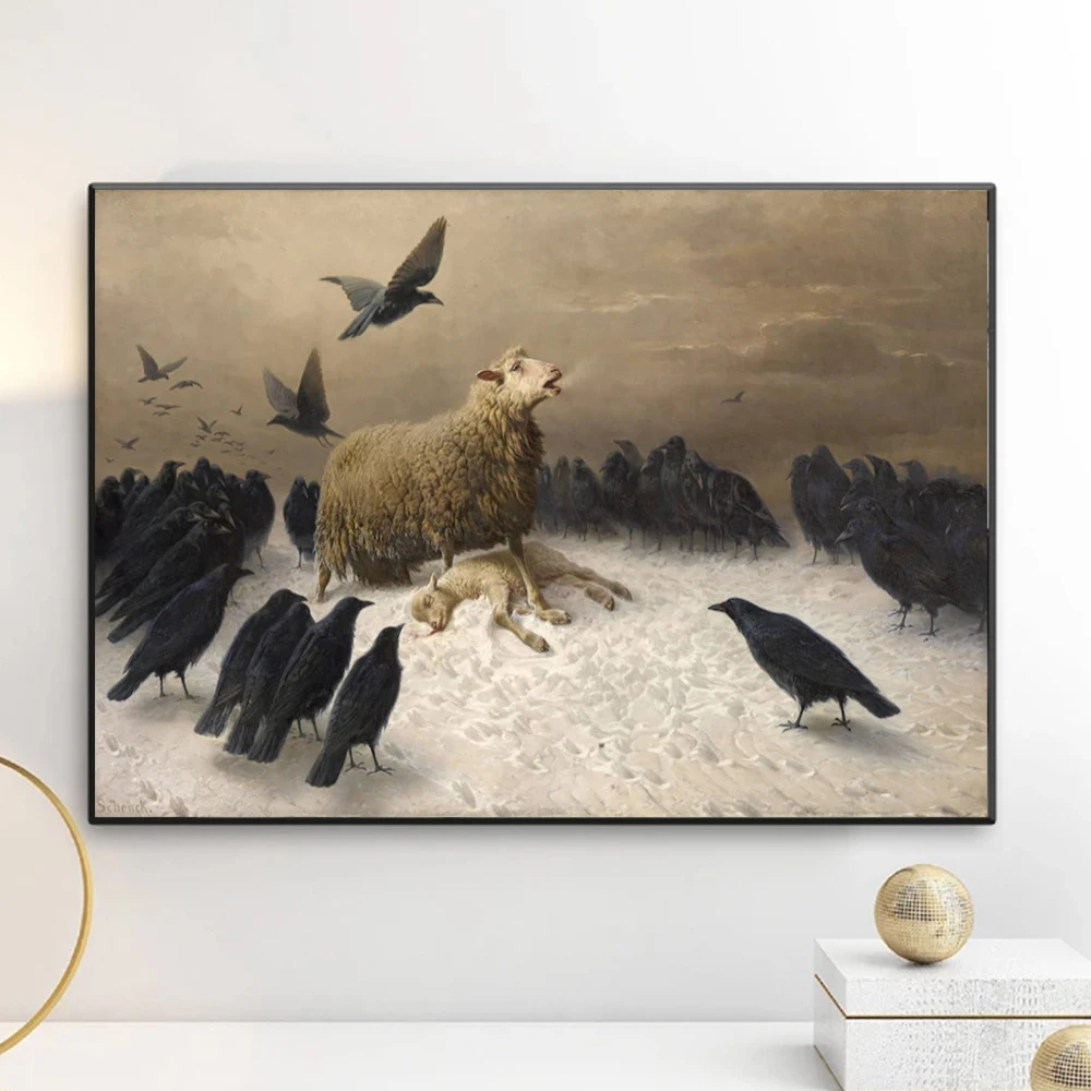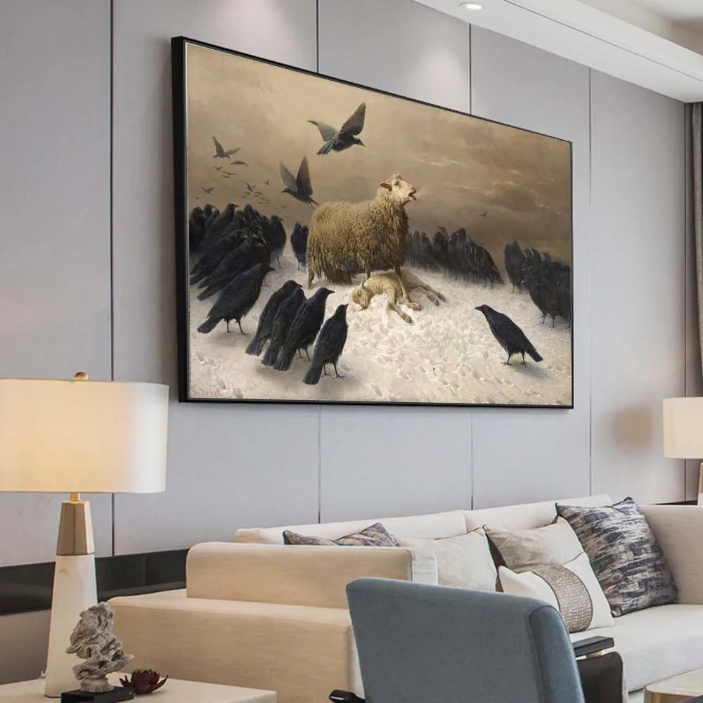 Настенная картина с черными и белыми крыльями в стиле ретро, абстра...