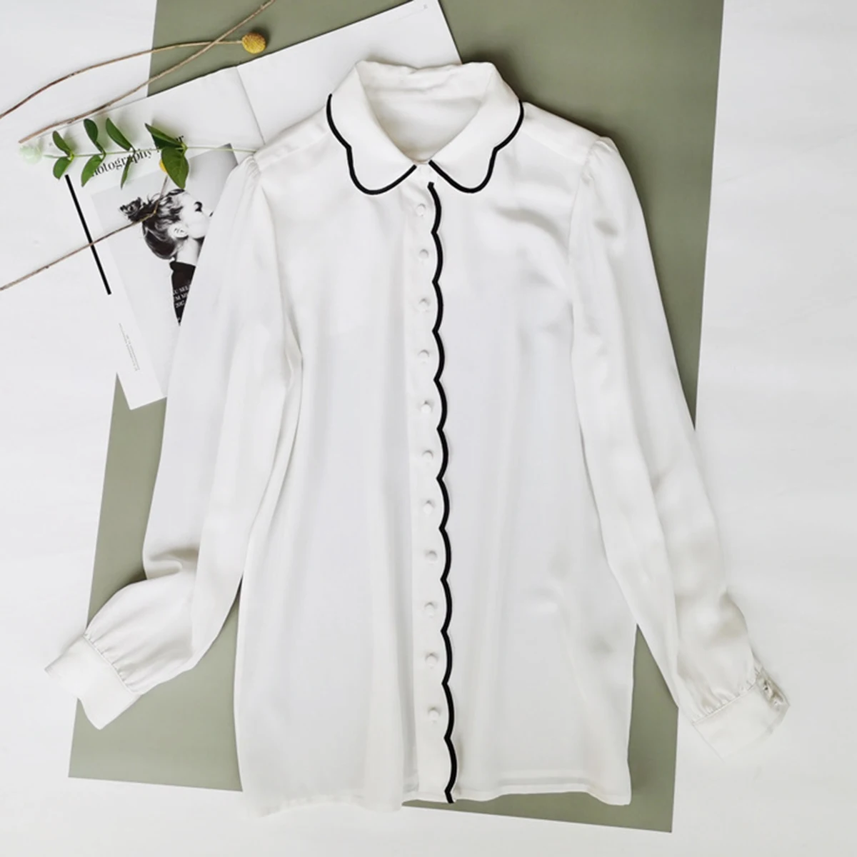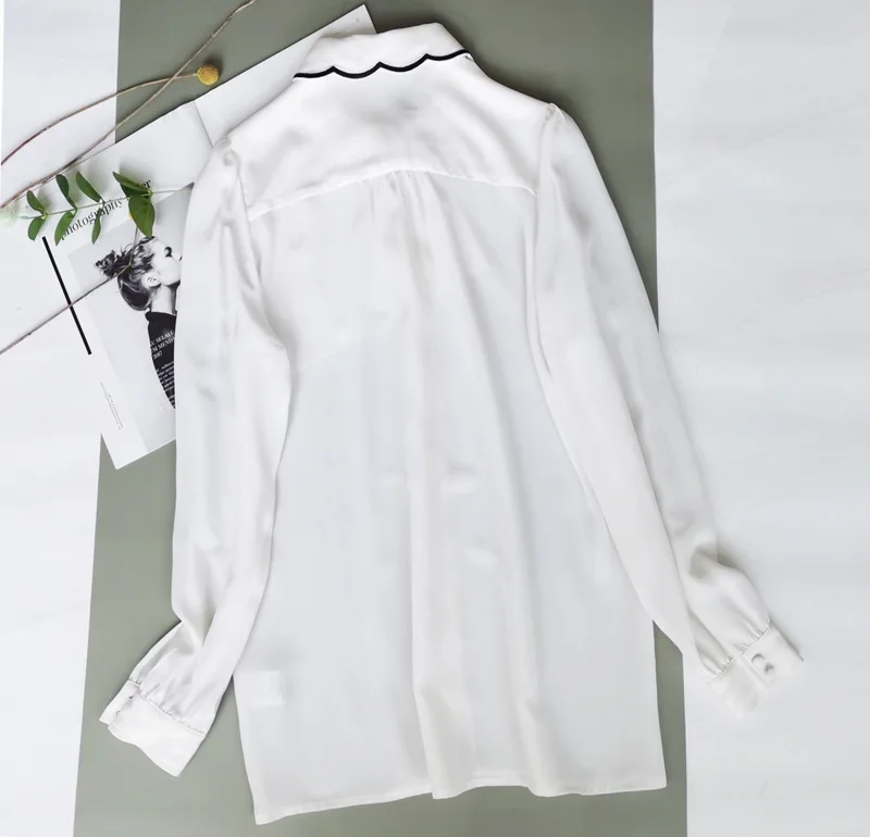 Белая блузка в стиле ретро, весна-осень 2022, рубашки с длинным рук...