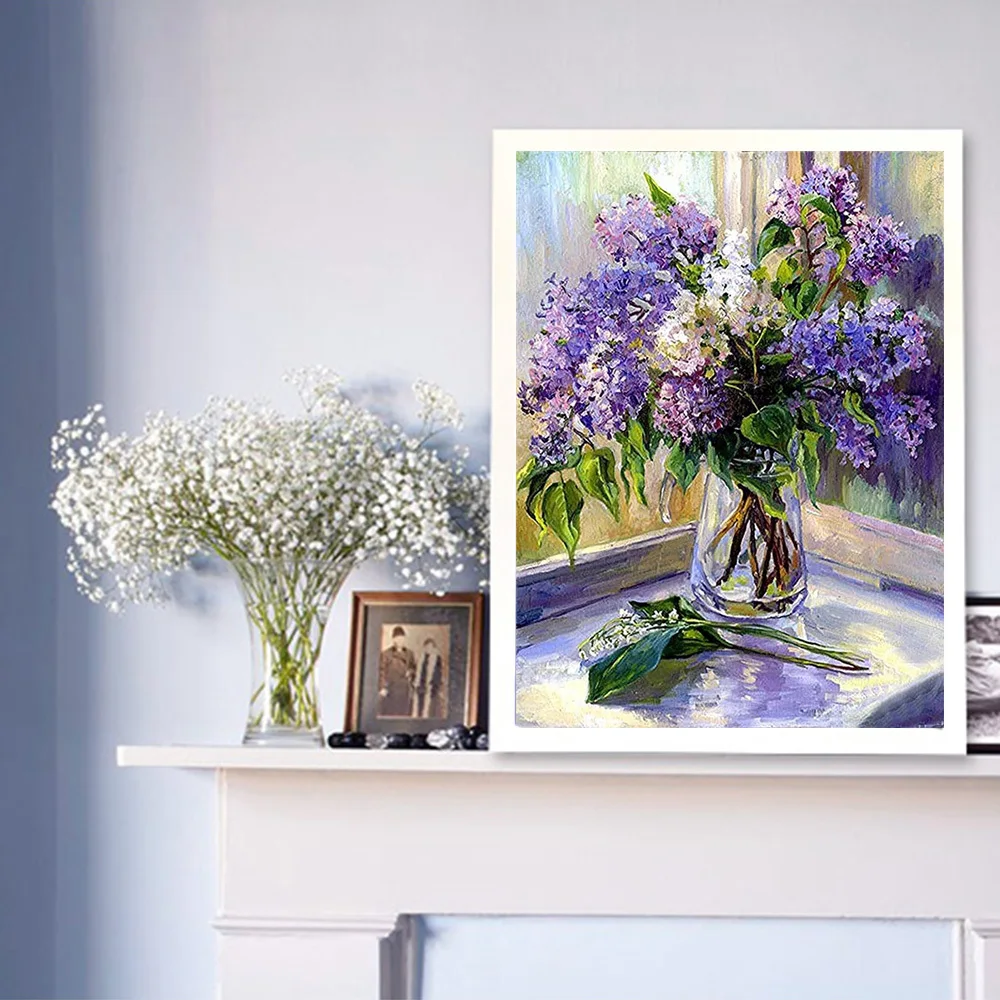 Алмазная живопись HUACAN 5d Diy, сиреневый квадраткруглая Алмазная вышивка, Цветочная мозаика, домашний декор