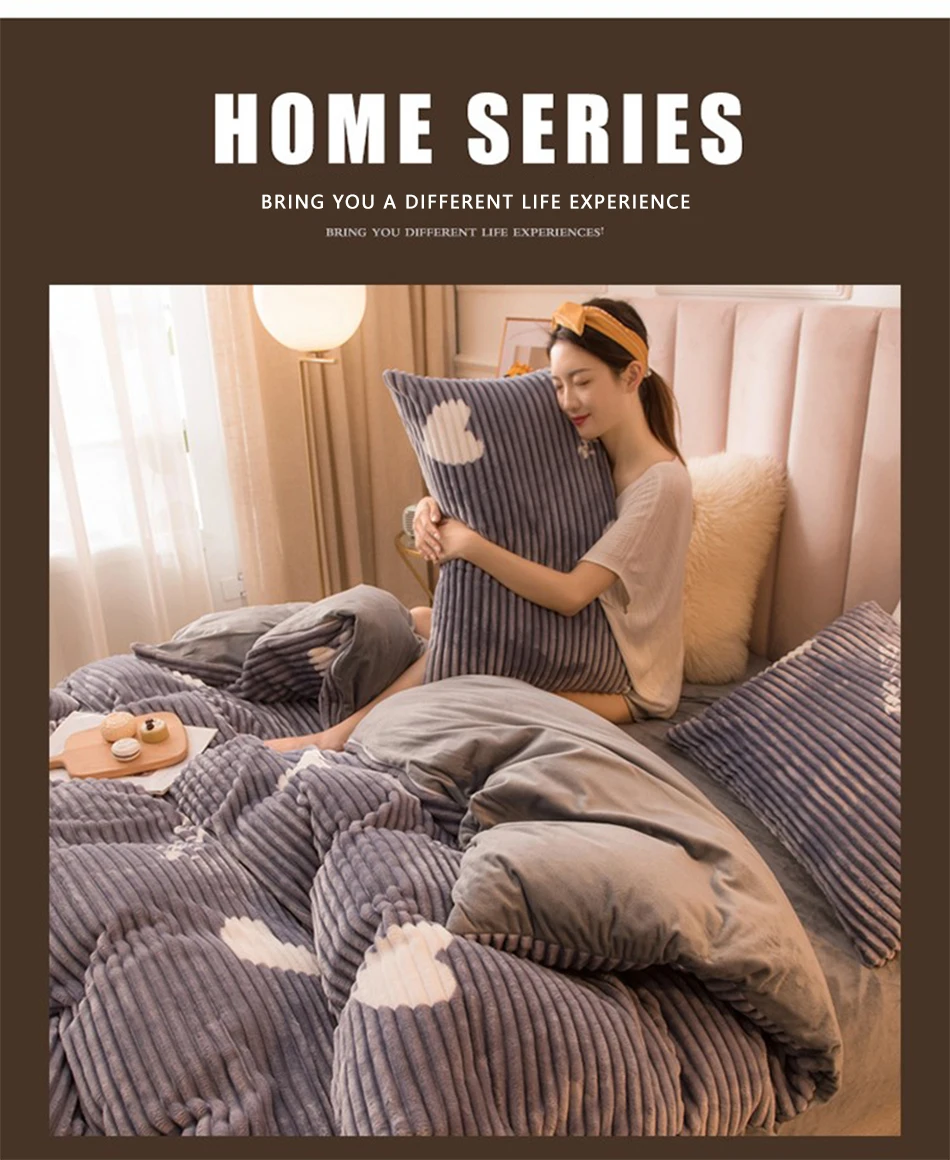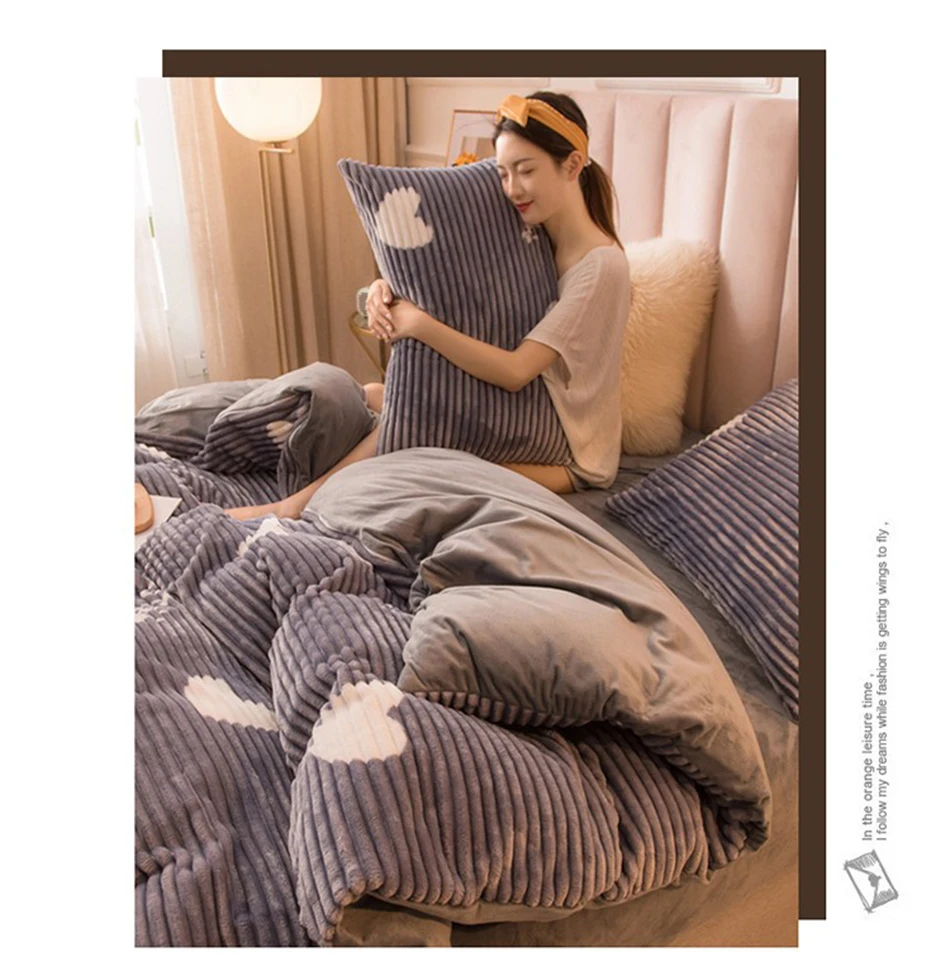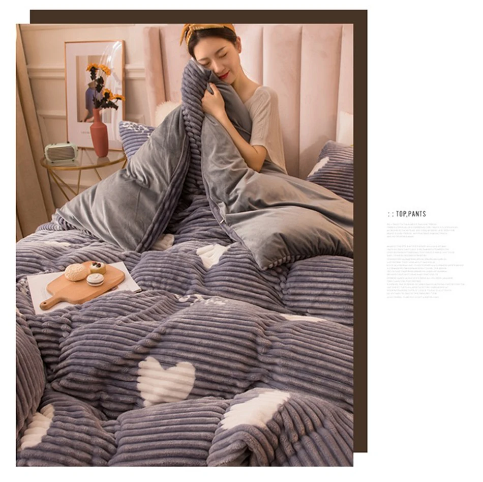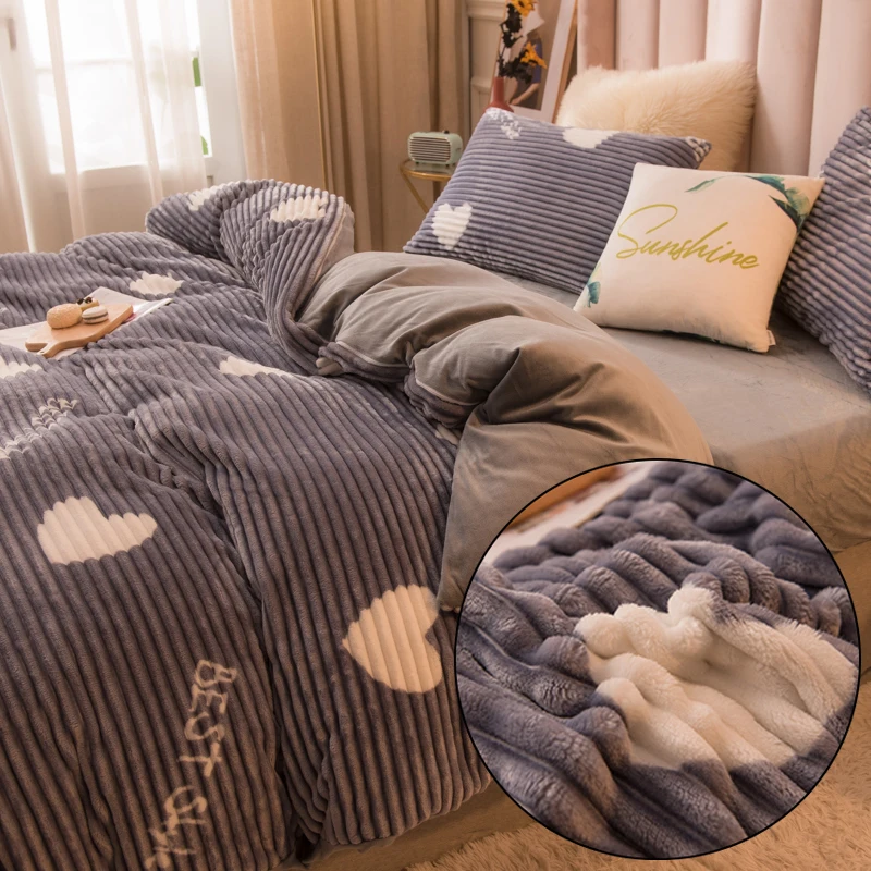 Зимний теплый семейный набор, двуспальный королевский комплект, пододеяльник для домашней спальни, одеяло в полоску, фланелевое одеяло AB Face