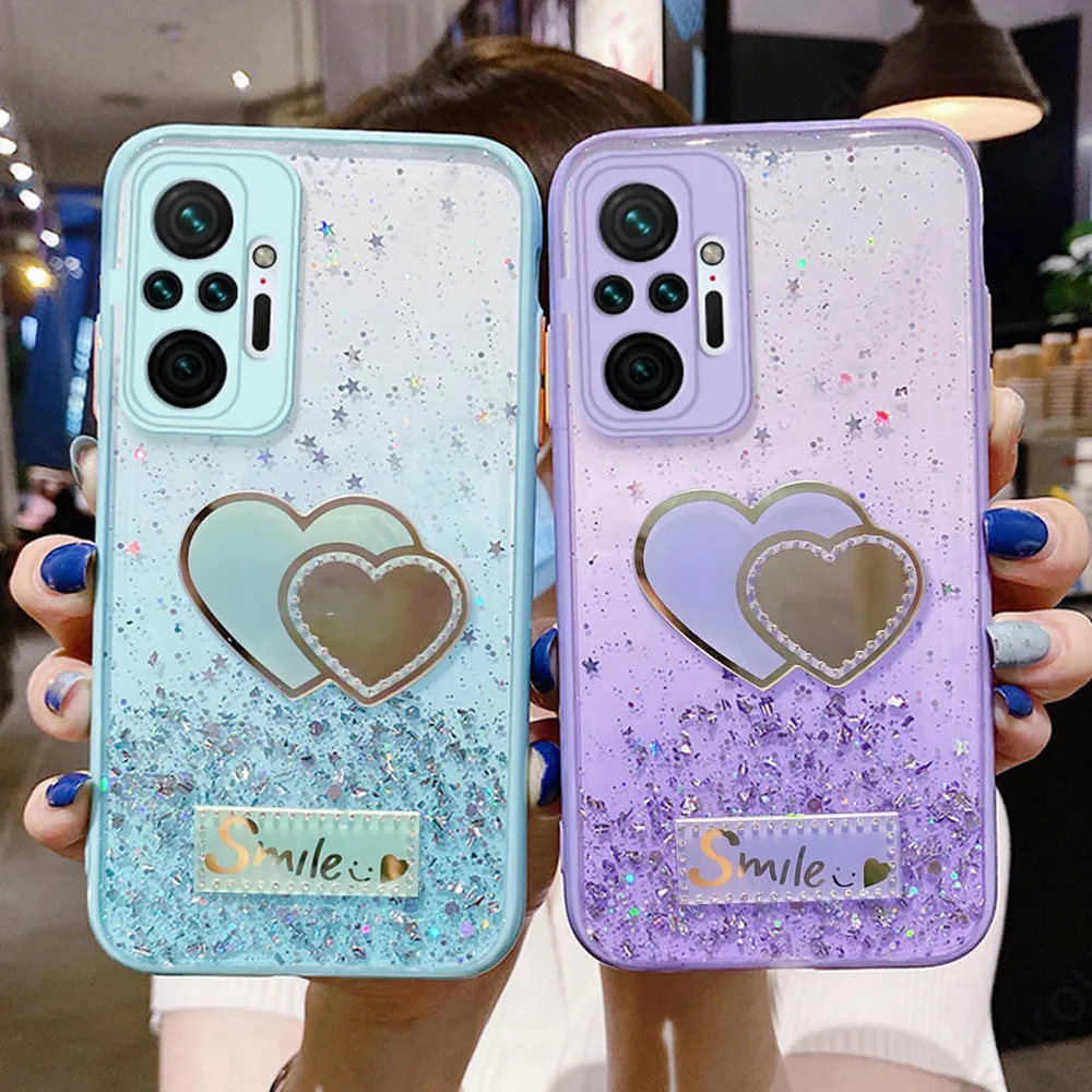 Зеркальный чехол с градиентными блестками и сердечками для телефона Samsung A51, A52, A71, A12, A50, A21S, A72, A20, S20, FE Note 20 Ultra, S21 Plus