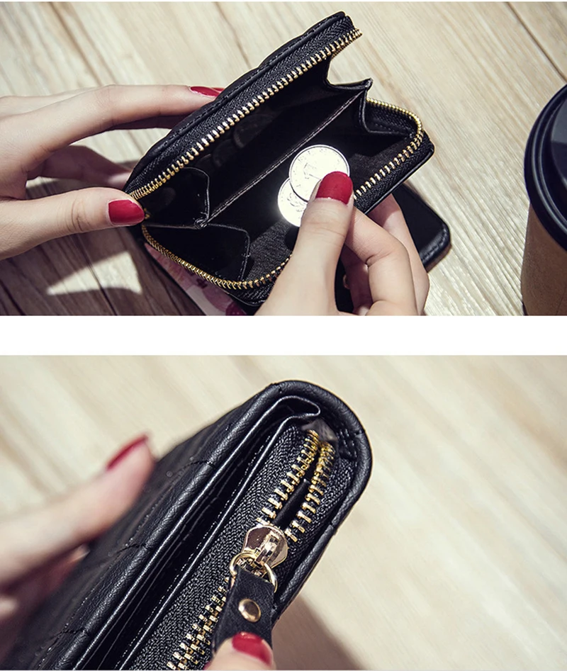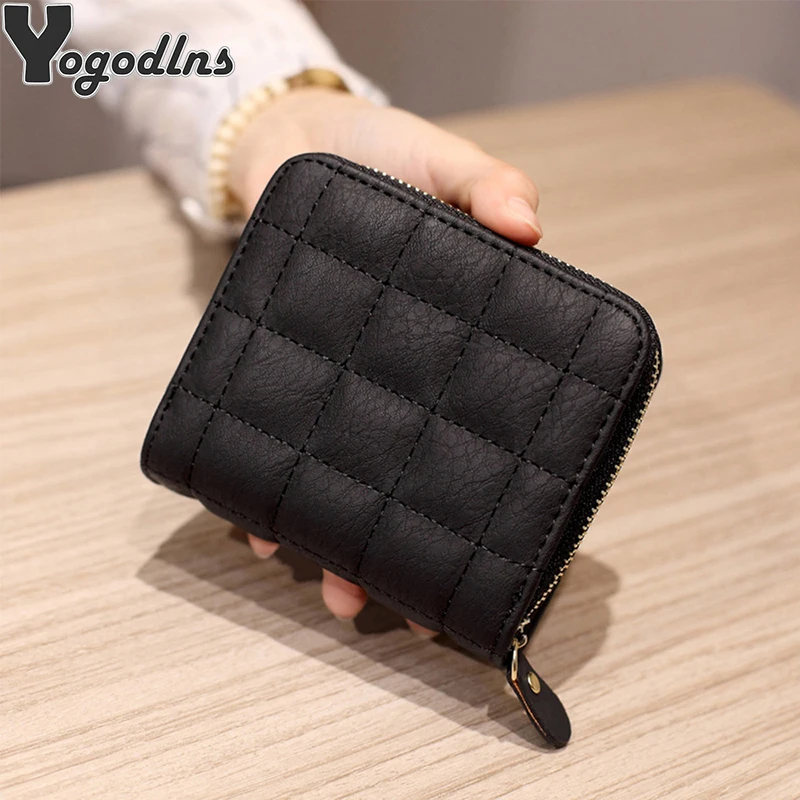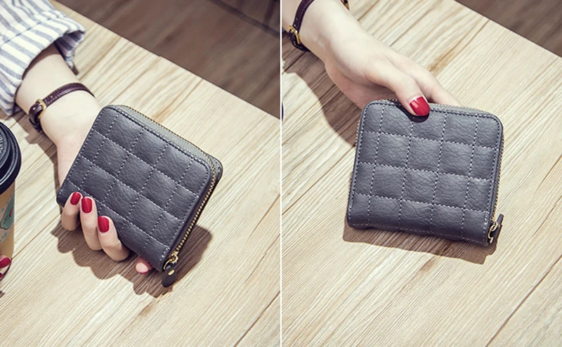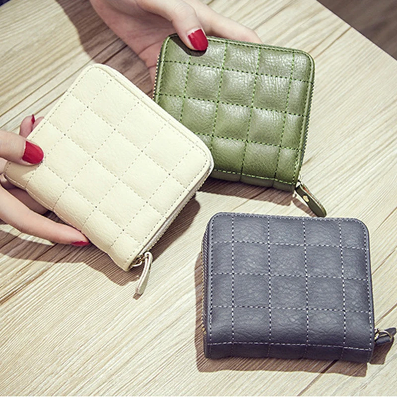 Женские короткие кошельки из искусственной кожи, Женские клетчатые кошельки, держатель для карт, кошелек, Модный маленький клатч на молнии, кошелек для монет