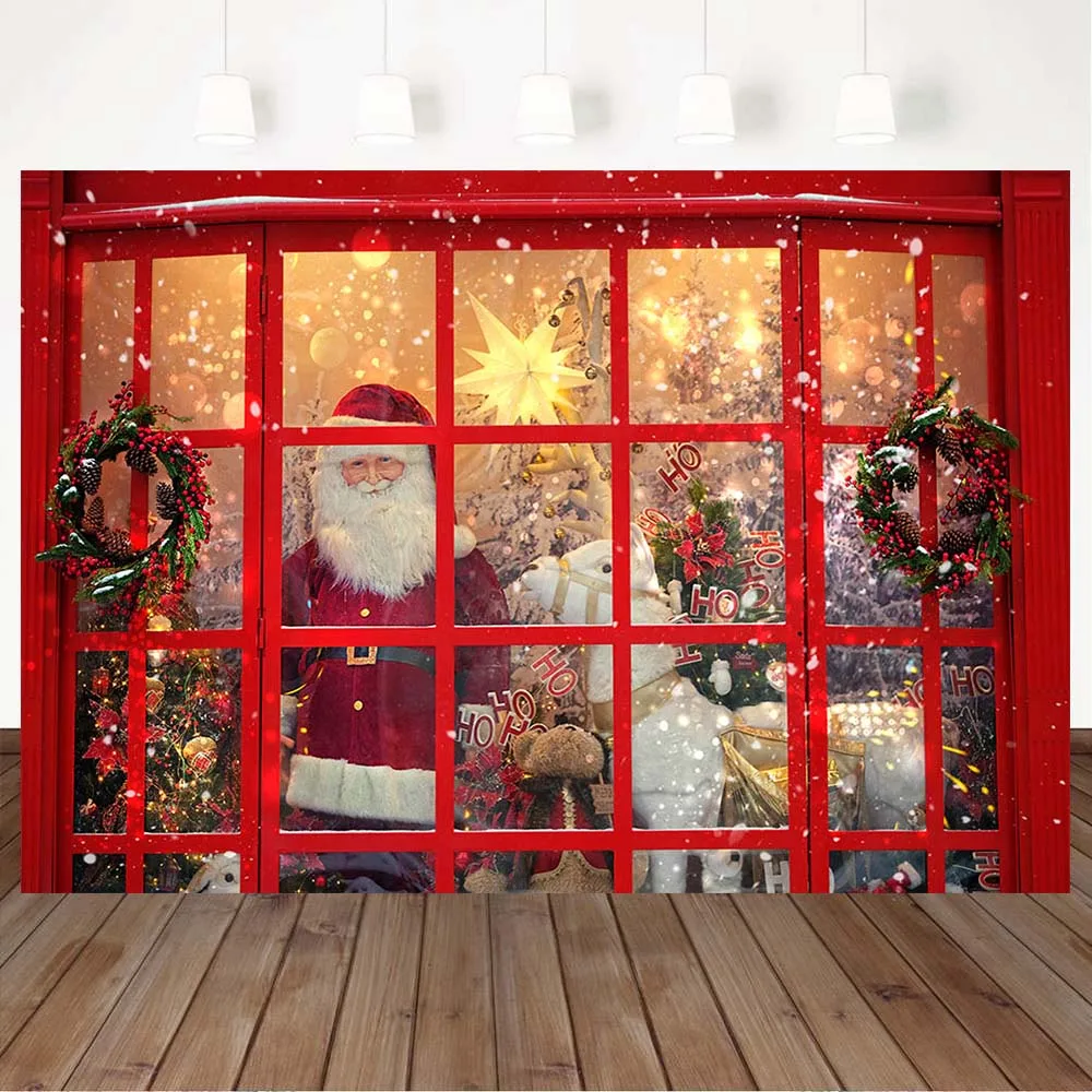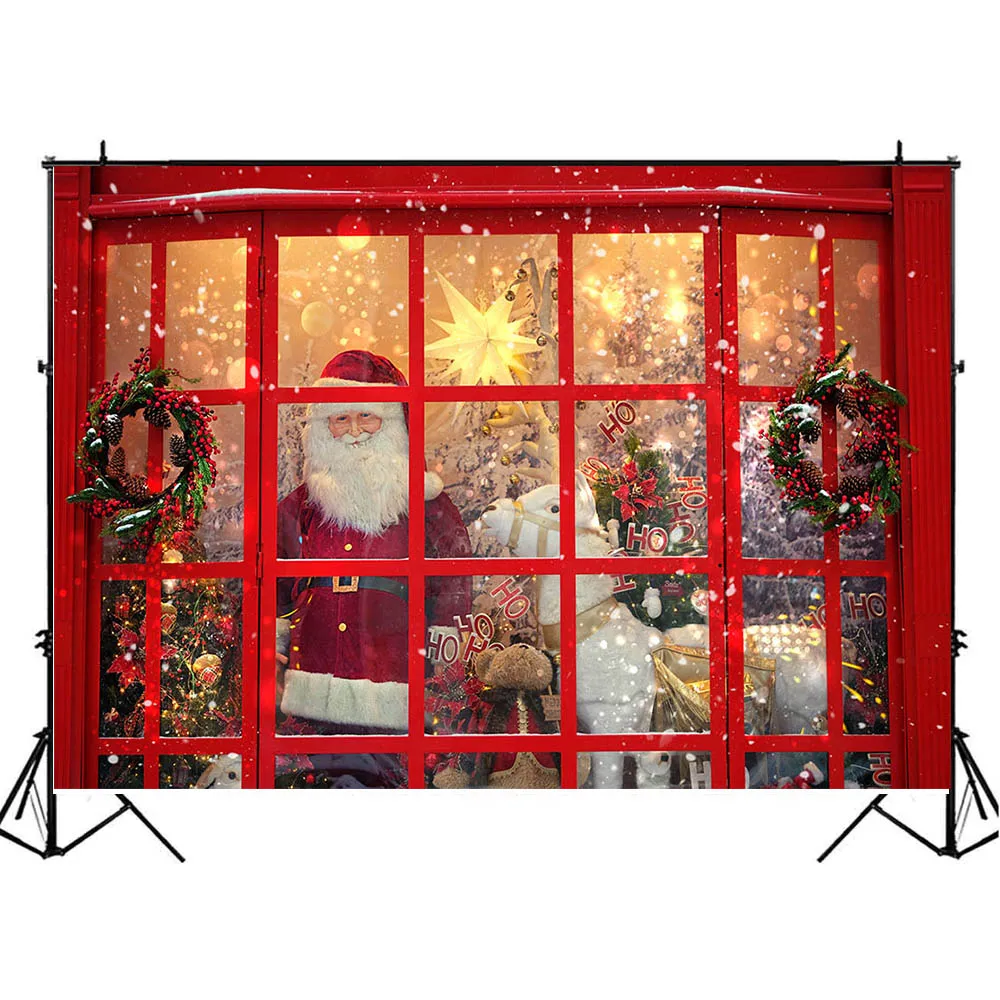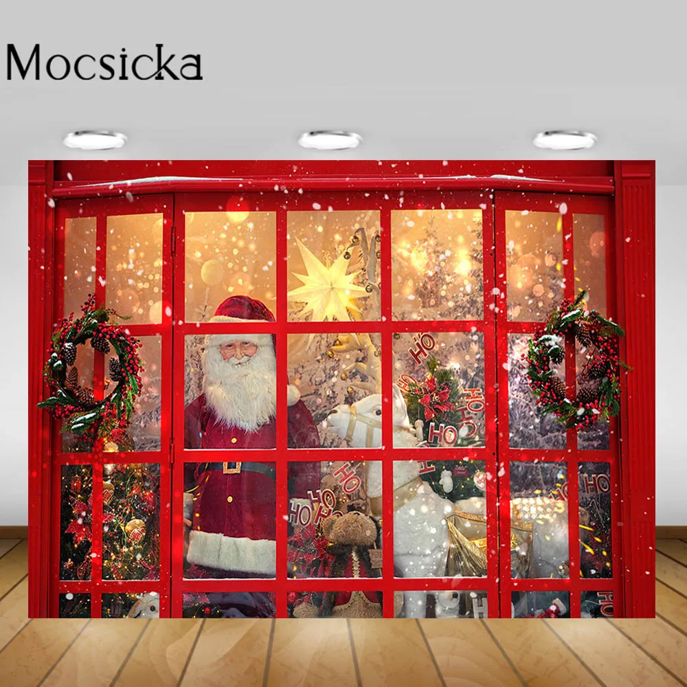 Mocsicka фотография фон для Рождества красное окно Санта-Клаус Рождественская елка венок ребенок день рождения Декорация