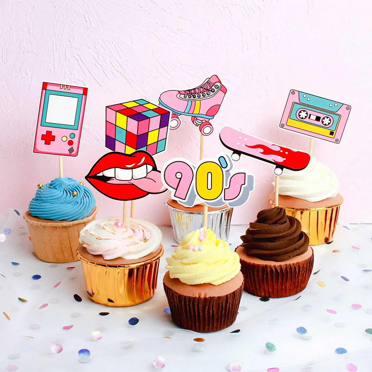 14 шт. 90s Топпер для кексов 1990s ретро тематическая вечеринка топперы для кексов украшение для торта в течение 90-х десяти дней декор для вечевечерние