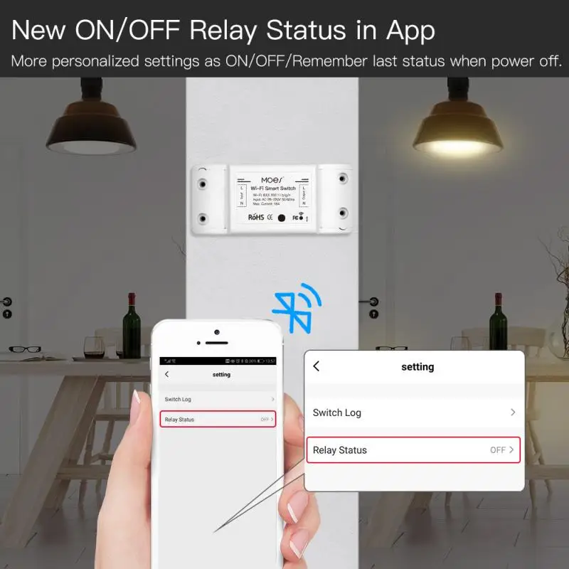 2. Широкое использование: умный переключатель широко применим и может быть применен к большинству приборов ho Use hold, таких как вентиляторы, фонари и лампы с максимальной нагрузкой 16 ампер, если ваш телефон имеет сеть; релейный Статус Доступен в приложении Smart Life с включением, выключением и запоминанием последнего статуса опционально.